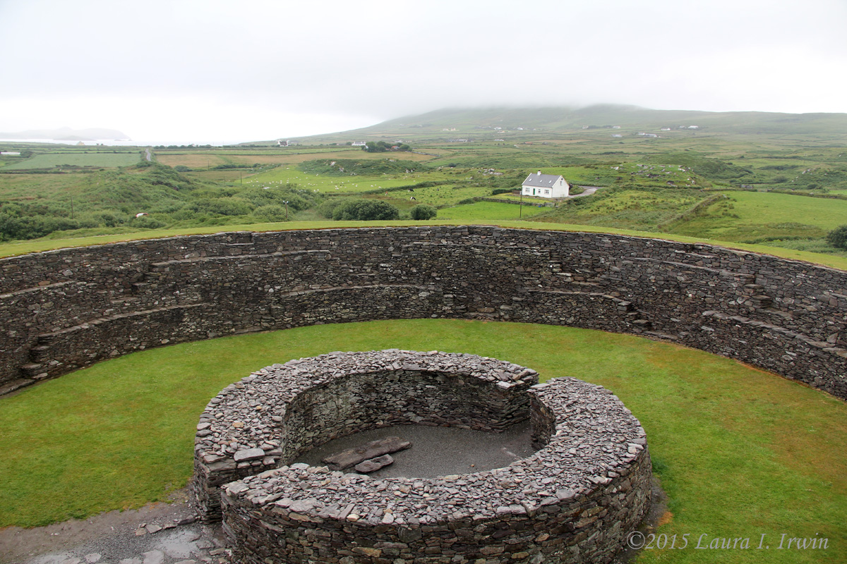 But there were some bright spots to the otherwise dreary day. I spent about an hour and a half exploring Ballycarbery Castle and the two nearby stone forts. The castle dates to the 1500s and stands high in a field overlooking the river Fertha. You can look into the first floor rooms, but the fun (at least for me) was climbing up the narrow stone steps at the back and exploring the rooms above the main floor. The fact that these old ruins are just sitting there and that you can just drive up and start exploring continues to amaze me!