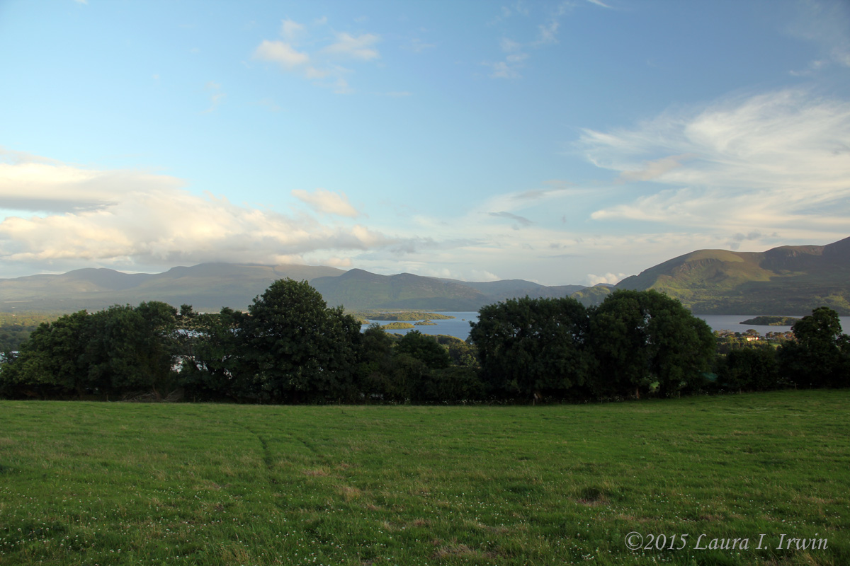 After all that, I was tired, and I felt a nap coming on. I went back to the hotel and after an hour-long nap, I got my second wind. It was off to Kate Kearney’s Cottage for dinner, music, and Irish dancing! The music was somewhat lively, but the atmosphere felt a little touristy, and the dancing didn’t last long. Since the sun was peeking through the clouds again, I seized the opportunity to drive up to Aghadoe, where one can find the remains of Aghadoe Cathedral, as well as a small round tower. So there I was at 9:00 at night, wandering around monastic ruins in Ireland. Fortunately, the sun doesn’t go down until almost 10PM, so there was still plenty of light. Aghadoe is situated high on a hill overlooking Killarney town and the lakes of Killarney. Simply put, it was a beautiful night and a beautiful view. The weather is calling for more wet weather tomorrow; I’m hoping it doesn’t dampen (pun intended!) my drive around the Dingle Peninsula…