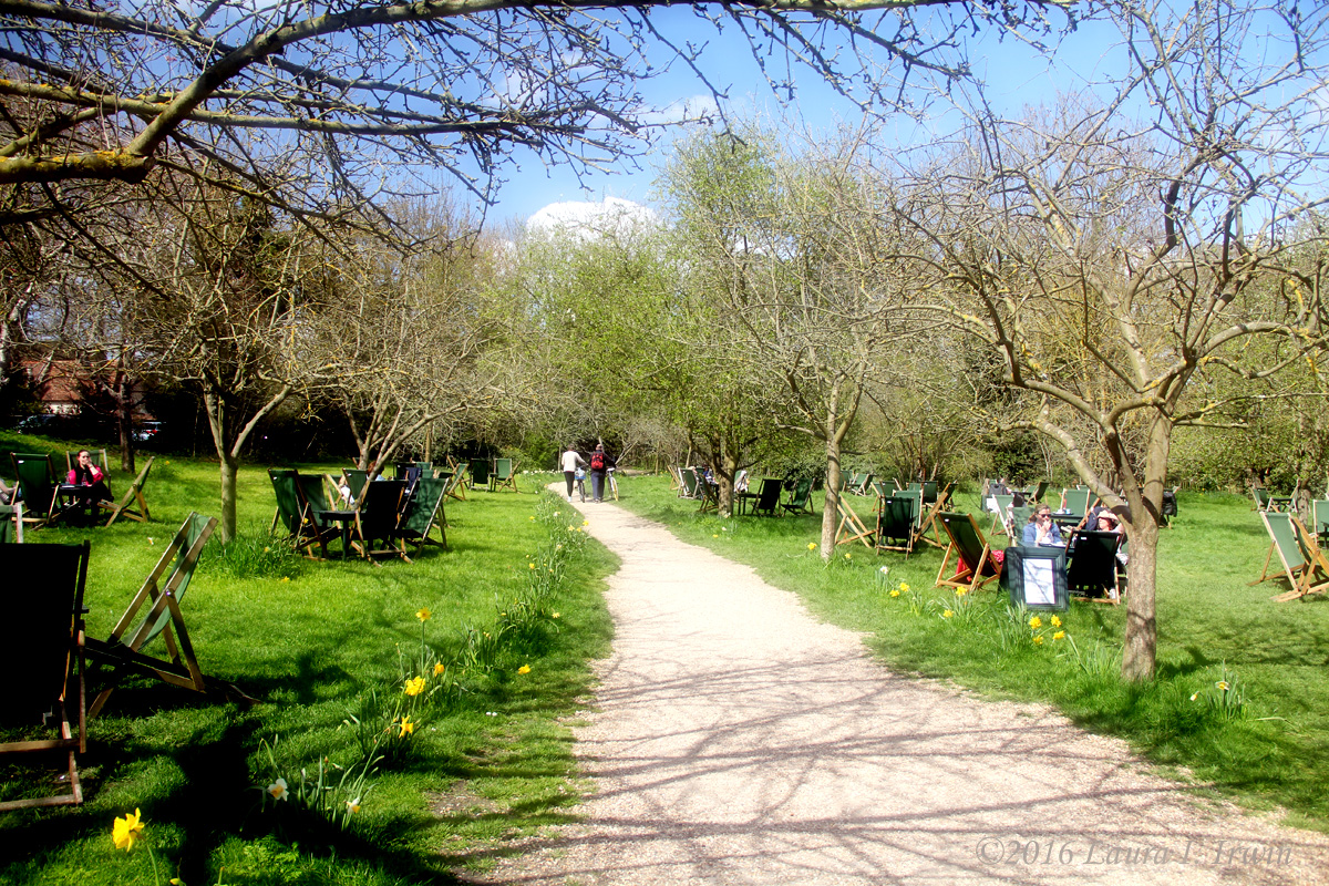 Fortunately, there was one bright spot in the day, and it came in the form of a 4 mile walk to the neighboring village of Grantchester and back. I had read about the Riverside walk online, and also about Grantchester’s unique outdoor tea room. The walk follows the river for part of the way, and then traverses Sheep’s Green and Grantchester Meadow. The village appears at just the right time. There is a small village church, which I stopped in after my tea. The Orchard Tea Room is just that: a picturesque tea room with seating and tables set up around the orchard. You pick up food inside, and then find a place to relax. All of the cakes looked yummy, but of course I opted for a scone with clotted cream and jam. And since I don’t drink tea, hot chocolate was my drink of choice. I lingered in the orchard for about an hour. I was planning to take the bus from the village back to Cambridge, but the next bus wasn’t due for about 30 minutes so II decided to just walk back.