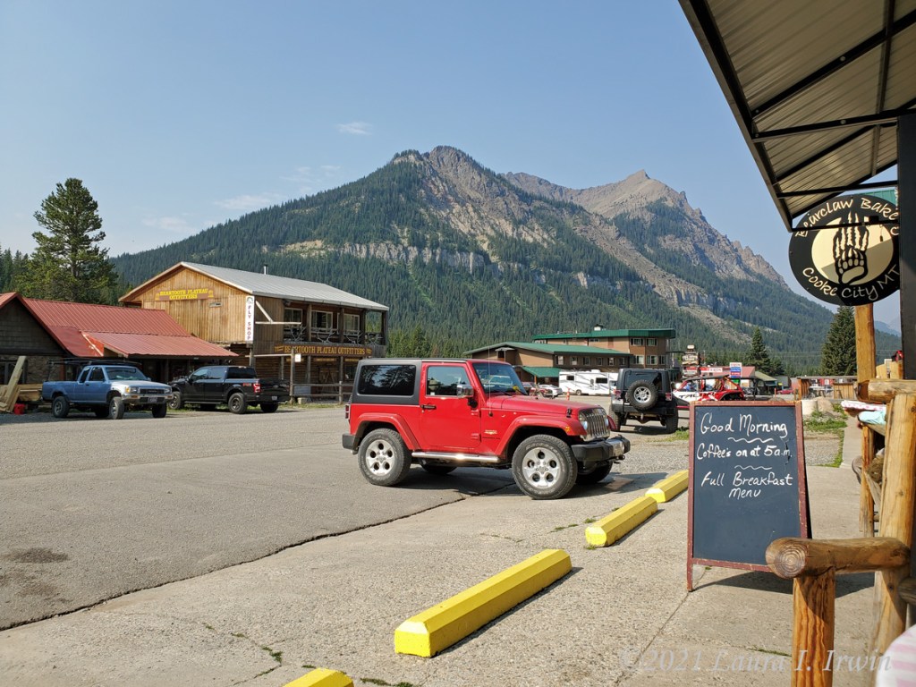 Despite having a cherry fritter with chocolate frosting and a yogurt in my room this morning before I left, I arrived in Cooke City quite hungry. I had originally wanted to stop for a huckleberry shake in Silver Gate, but I couldn’t rationalize a milkshake at 10:00AM. I could, however, rationalize a second breakfast. Yes, you read that correctly. Some days, one breakfast just isn’t enough. The Bearclaw Bakery was just the place. There were two wooden high top tables out front and I waited just a few minutes for one of them to clear. With a view of the Absaroka mountains and the quaint “downtown” of Cooke City (population 140), I can’t imagine a better setting to enjoy my grilled sourdough with fig preserves, ham, and brie cheese.