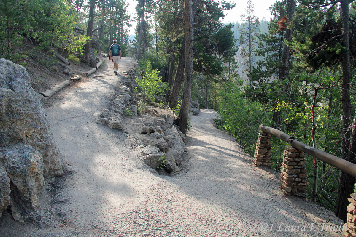 I followed the northern and eastern parts of the lower loop around Yellowstone so that I could visit the Grand Canyon of the Yellowstone before heading south. While not quite as impressive as the Grand Canyon, this one is pretty spectacular. There are lookouts and viewpoints along both the North and South Rim Drives. I started on the North Rim and undertook the hike down to the Brink of the Lower Falls. The trail drops 600 feet down along the wall of the canyon in just ⅜ of a mile. Easy going down, not quite so fun going back up. The view over the falls and down into the canyon is incredible.