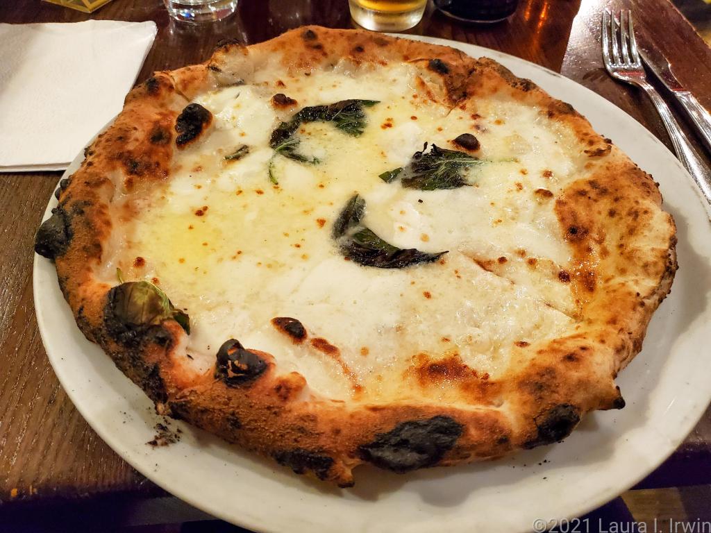 I passed through Times Square and walked up Broadway (with a stop at M&M World, obviously) to Saturday night’s dinner at Don Antonio. I had decided ahead of time that I wasn’t going to eat anywhere I’ve eaten before on this trip. Clearly, that wasn’t the best strategy. Hailed as one of the best Neapolitan pizzas in the city, Don Antonio had me eagerly anticipating my evening meal. Disappointment was in the cards because while the Quattro Formaggi pizza was passable, it definitely lacked a wow factor. Also, they told me I wasn’t allowed to add prosciutto. Really?? I was one for three on the food front.