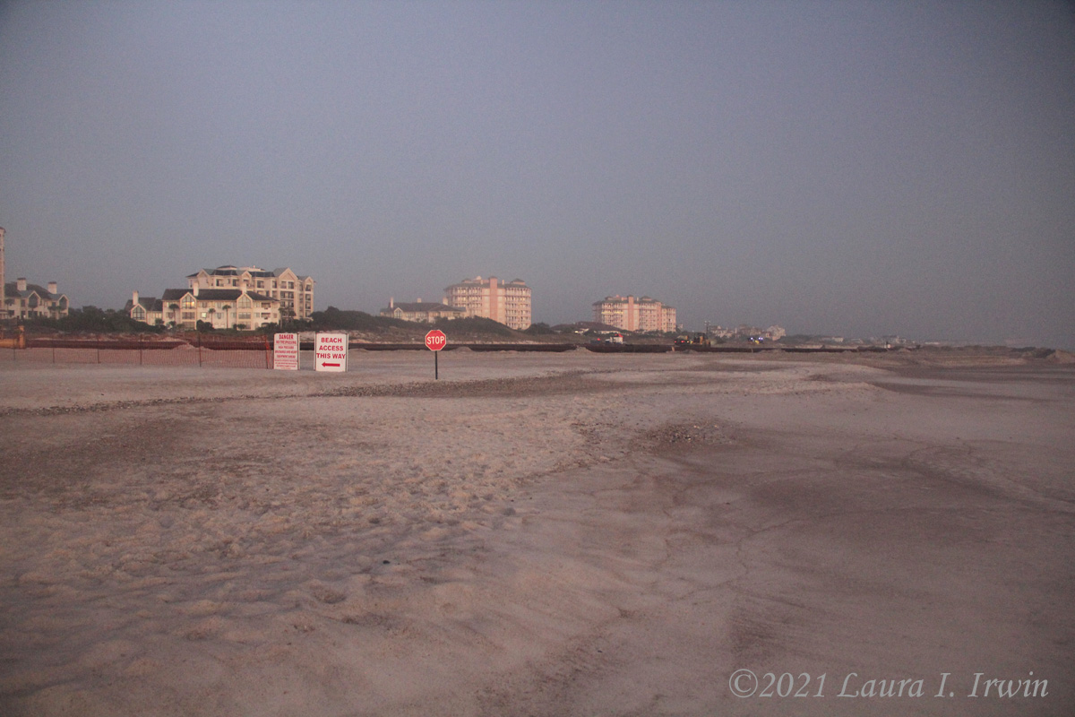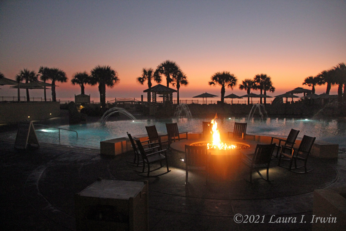 The resort’s beachfront encompasses 3.5 miles of sand, but it’s not the soft sand I’m used to seeing on Hilton Head. This beach has a lot of shells and small rocks, so it’s not particularly comfortable to walk barefoot except along the waterline. There was some kind of beach refurbishment going on just slightly north of the hotel, with heavy machinery and a large pipe running the distance of the beach. The beach was pretty to look at, but I didn’t feel the usual pull to walk for miles.