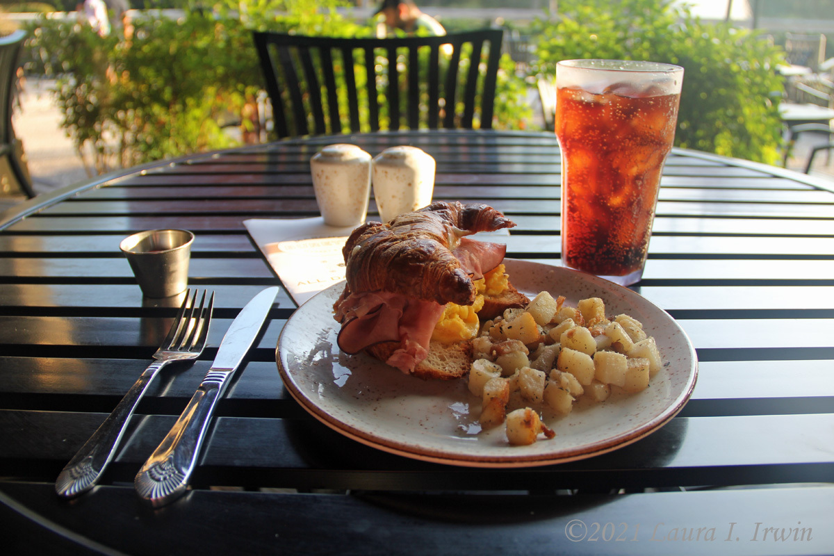 Marché Burette – Since I had struck out on my meals on Wednesday, I figured I would just walk over to the Marché Burette market/deli (part of the resort complex) and pick up something to bring back to my room for my last breakfast. However, the large patio overlooking the fountain and pond seemed like a nice place to relax, so I grabbed a table to enjoy my final al fresco meal in the Sunshine State. Service was very slow and I waited 15 minutes just to get a menu. Fortunately, things improved dramatically once my server arrived. I had the largest overfilled ham, egg, and cheese croissant I think I’ve ever had. I ate it with a knife and fork and it still created quite a mess on my plate! The accompanying breakfast potatoes were perfectly simple and seasoned well. This was definitely the best meal I had over the short time I was on Amelia Island.