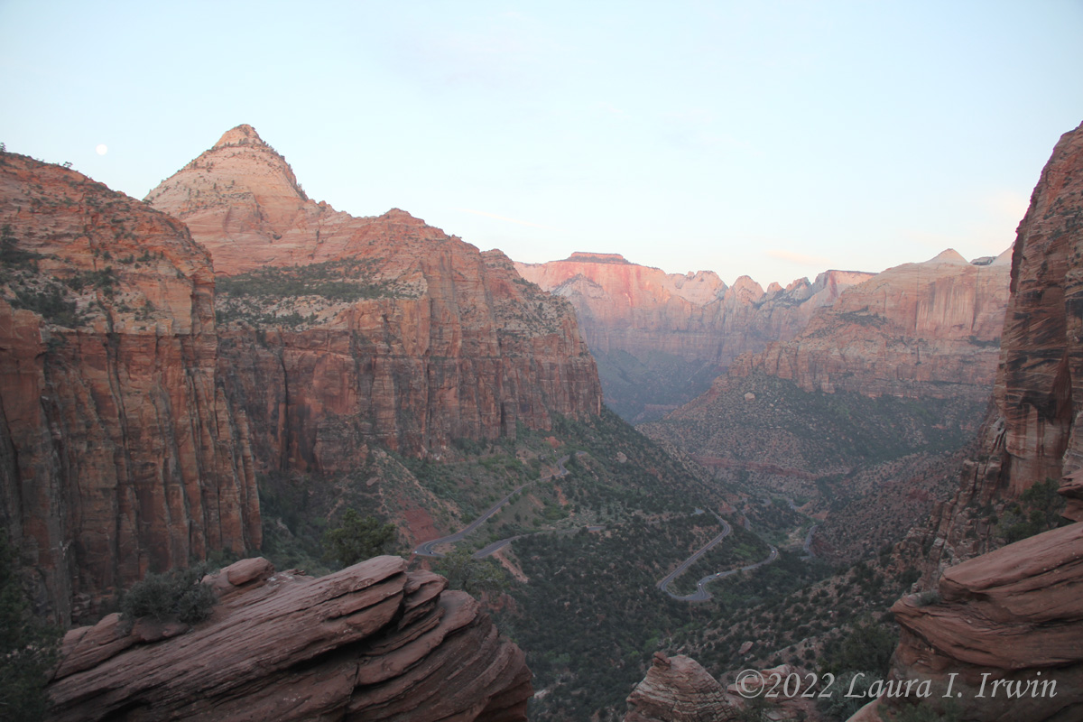 6:00AM. Flashlight? Check. Warm layers? Check. Camera? Check. While I’m always an early-riser, it’s not usually to tie on my hiking shoes and hit the trails in the dark. But that’s exactly what I did this morning as I headed out to witness the sunrise over Zion Canyon from the Canyon Overlook Trail.