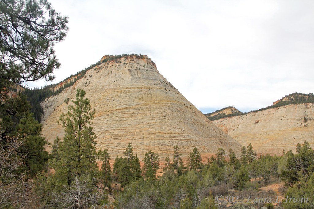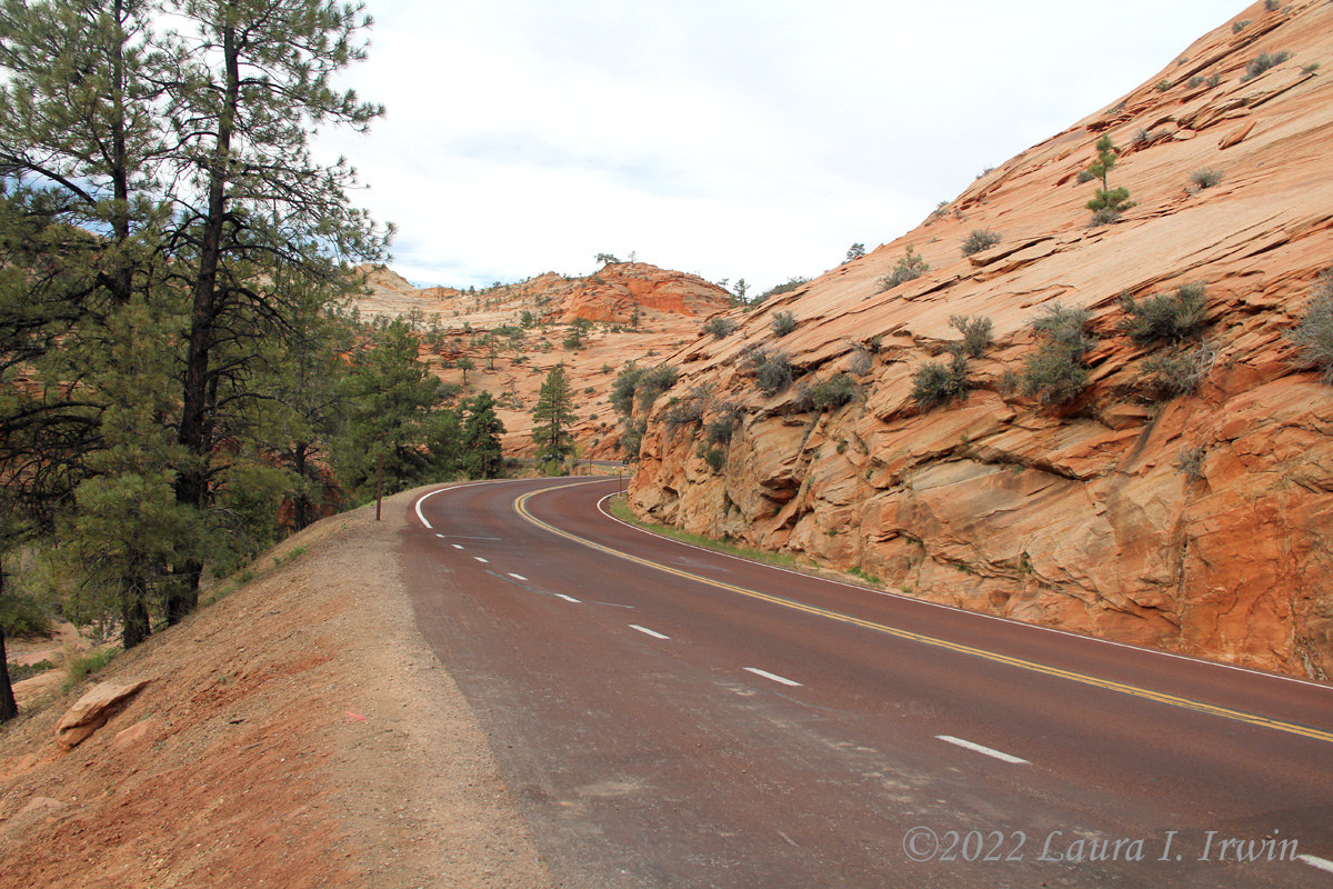 I started with a French toast breakfast at the Spotted Dog Cafe just down the street before heading into the park. I wanted to drive the Zion-Mt. Carmel Highway and back to see the unique scenery on the east side of the park. Unfortunately, the cloud cover didn’t make for particularly good pictures this morning.