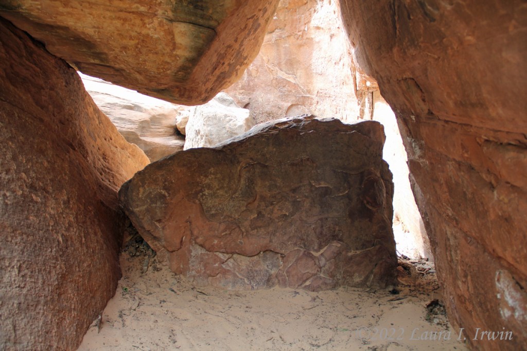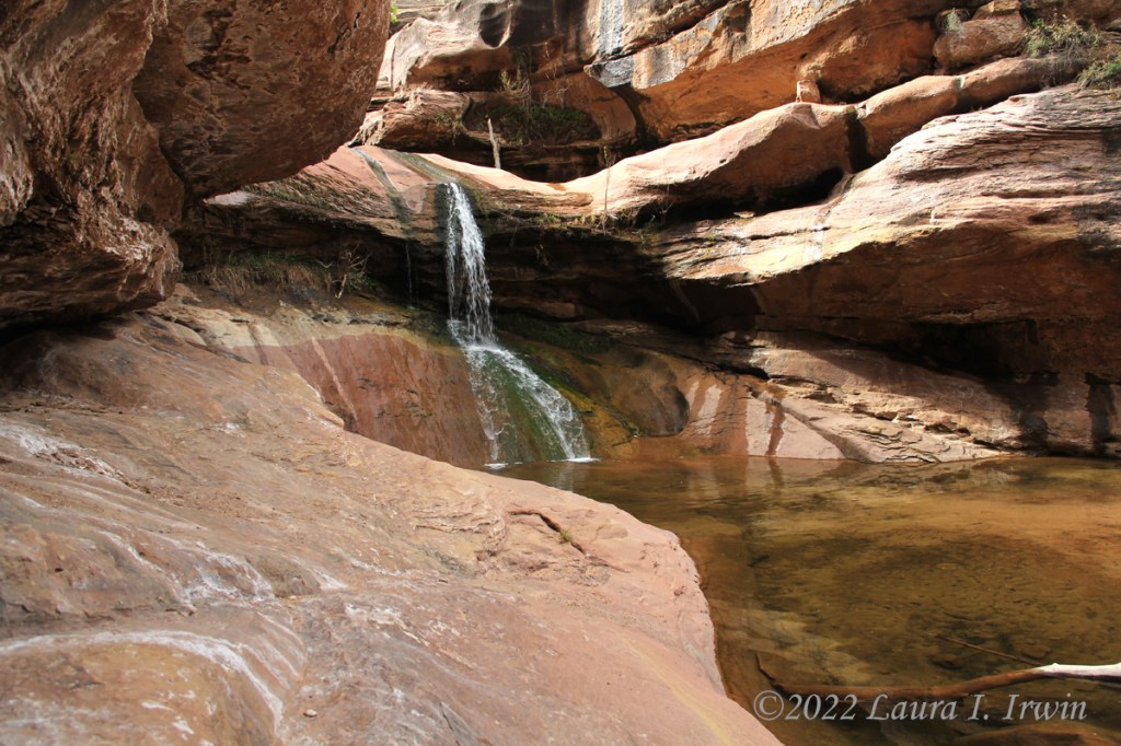 I almost turned back near the end because I couldn’t see an easy way to keep going without climbing up some pretty steep rocks to get there. Fortunately, a gentleman coming back down told me if I could find a way to get up the first ledge, it leveled out after that. So I climbed up backwards and kept going. Just before the falls, I had to lay on my back to get through a pile of boulders.
