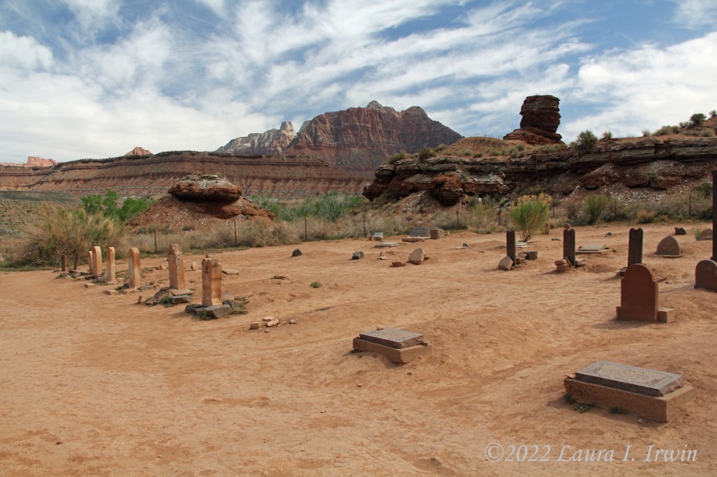 I had visited Grafton, Utah on a previous trip to Zion many years ago. Located on a well-maintained semi-dirt road just east of Rockville, the ghost town of Grafton includes five preserved buildings and a small pioneer cemetery. Wandering among the buildings is like stepping back in time. There is a school/church, a couple of homes, and the cemetery. The primitive headstones in the cemetery include inscriptions such as, “Killed by Indians”.