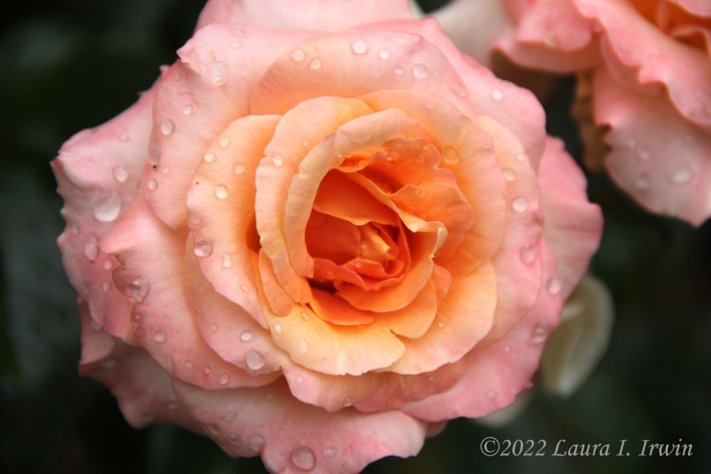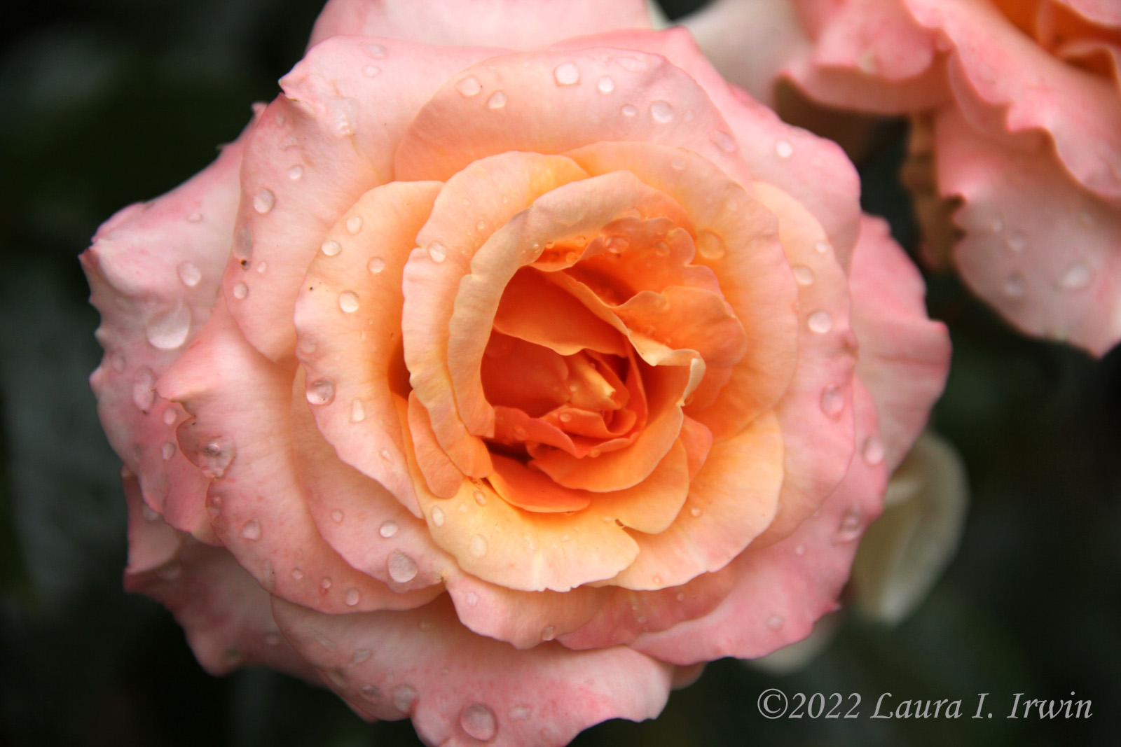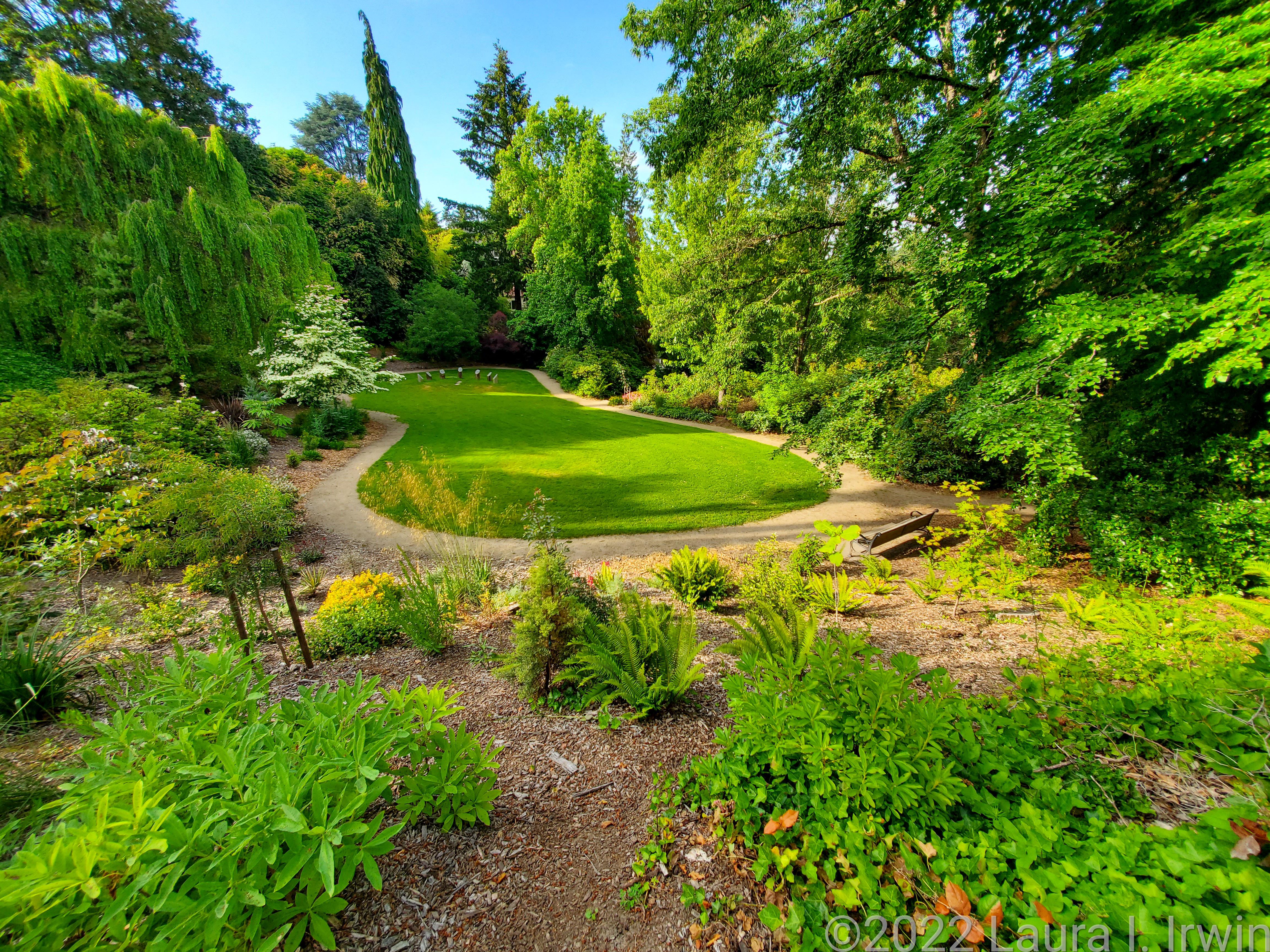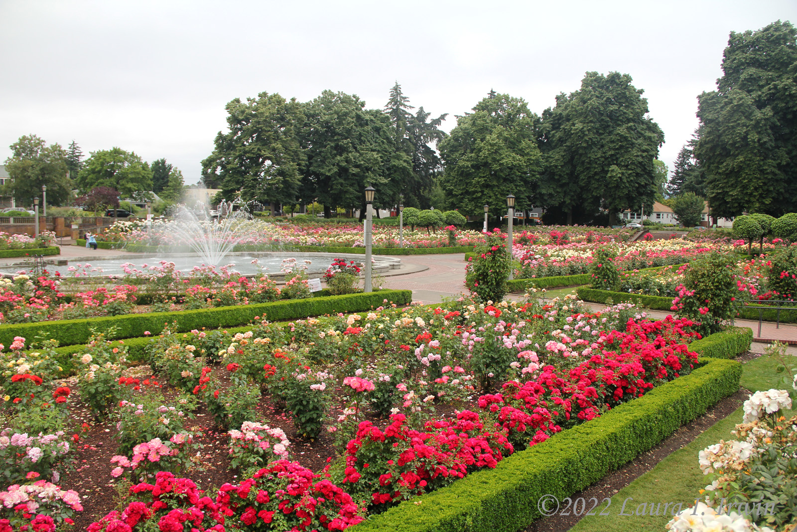 My last stop for the day was one last visit to the International Rose Test Garden. When I was there yesterday, I found a small garden area (called the “Secret Garden”) tucked away just down the hill from the rose garden. There is just one bench, a large grassy area, and some interesting stones with Roman numerals. The whole garden is bordered by trees and has just a couple of footpaths leading into it. I sat there for a little while before strolling through the roses.