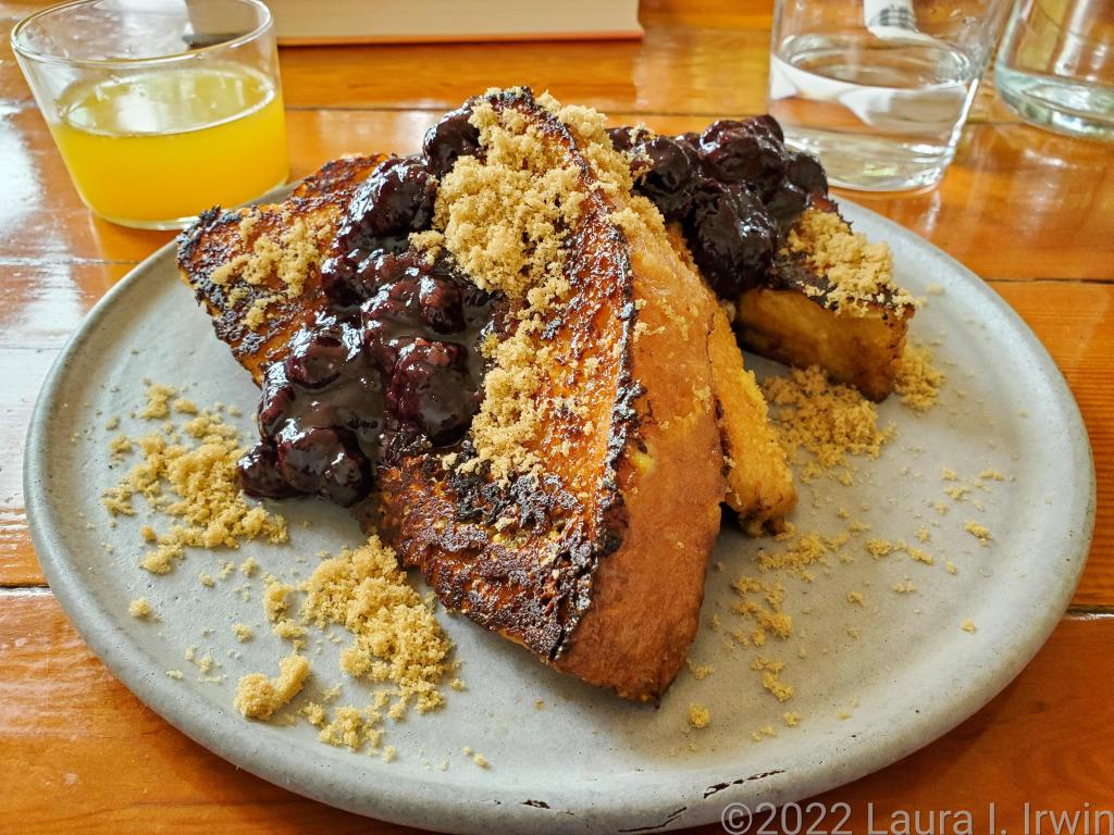 I set myself the challenge of finding the best breakfast in Portland today. I usually don’t have any trouble finding great breakfast places, but none of the menus I saw online really appealed to me. Sweedeedee appeared in several of my Google searches for the best breakfast in Portland, so I decided to give it a try. It’s a tiny place with just four tables and a couple of window stools inside and a few more covered tables outside. Since it was only in the upper 50s this morning, I picked a table inside the cute cafe and ordered a mimosa and French toast. I didn’t think it was possible for French toast to literally melt in your mouth, but this one proved me wrong. The bread was perfectly crystallized with brown sugar on the outside and soft as can be on the inside. Topped with blueberries and just enough cultured butter to add an extra flavor element, it was probably one of the best French toasts I’ve ever had, and that’s saying a lot!