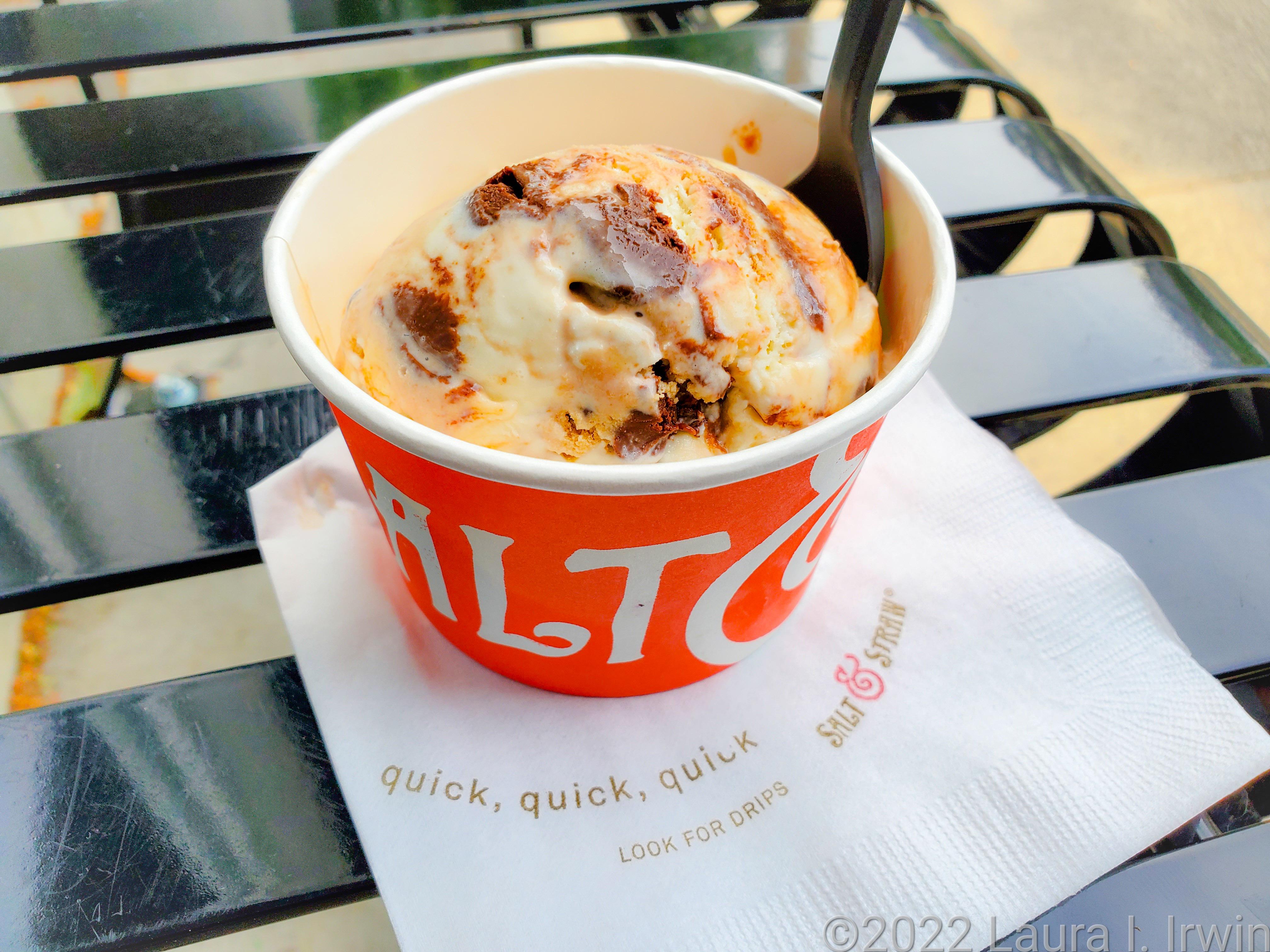 Next stop: ice cream. Salt and Straw is a small batch ice cream that has slowly branched out from a food cart in Portland to Seattle, California, and Florida. I actually had an individual cup of their Cinnamon Snickerdoodle flavor on my flight out here Wednesday night. But I was looking forward to trying some of their more inventive flavors today. Pear and blue cheese ice cream, anyone? I sampled that one, but ended up going with Salted, Malted Chocolate Chip Cookie Dough. Not very original, I know, but it was really good and creamy.