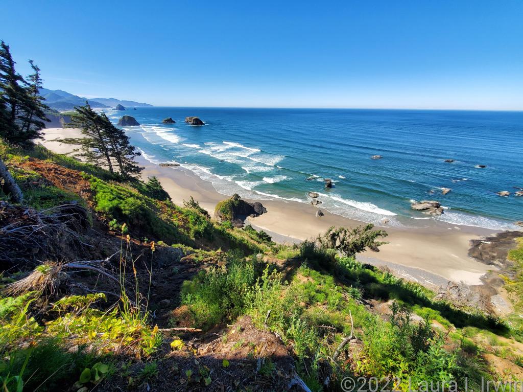 After taking some pictures and enjoying the view, I drove the 1.5 miles over to Indian Beach. Oregon beaches aren’t really swimming beaches, although a few brave souls were wading. There are plenty of surfers and sunbathers (especially on a picture perfect summer day like today), but the water is too cold for much else. I immediately took off my flip flops and put my toes in the water. I wouldn’t want to stay in for long, but I enjoyed walking the length of the beach and getting my feet wet.