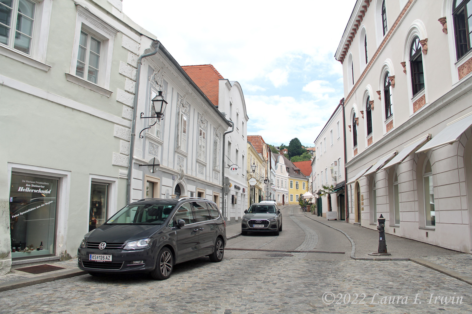 It was bittersweet leaving my hotel in Vienna this morning. I know I have a lot more to see in Austria, but I also loved Vienna. I went for a short walk near my hotel this morning before heading to the airport to pick up a rental car for the rest of my trip. I successfully navigated the rental car process at the Vienna Airport, thanks to the helpful gentleman at the rental car counter and an automatic car with built-in GPS that was already set to English. It wasn’t long until I was driving the A22 Autobahn out of the city. The Wachau Valley is about an hour’s drive west of Vienna and encompasses the Danube River Valley between Melk (to the west) and Krems (to the east). It is known for its many wineries and apricot orchards. Many people visit the Wachau Valley as a day trip from Vienna, but I want to see it all and will be spending the whole week here.