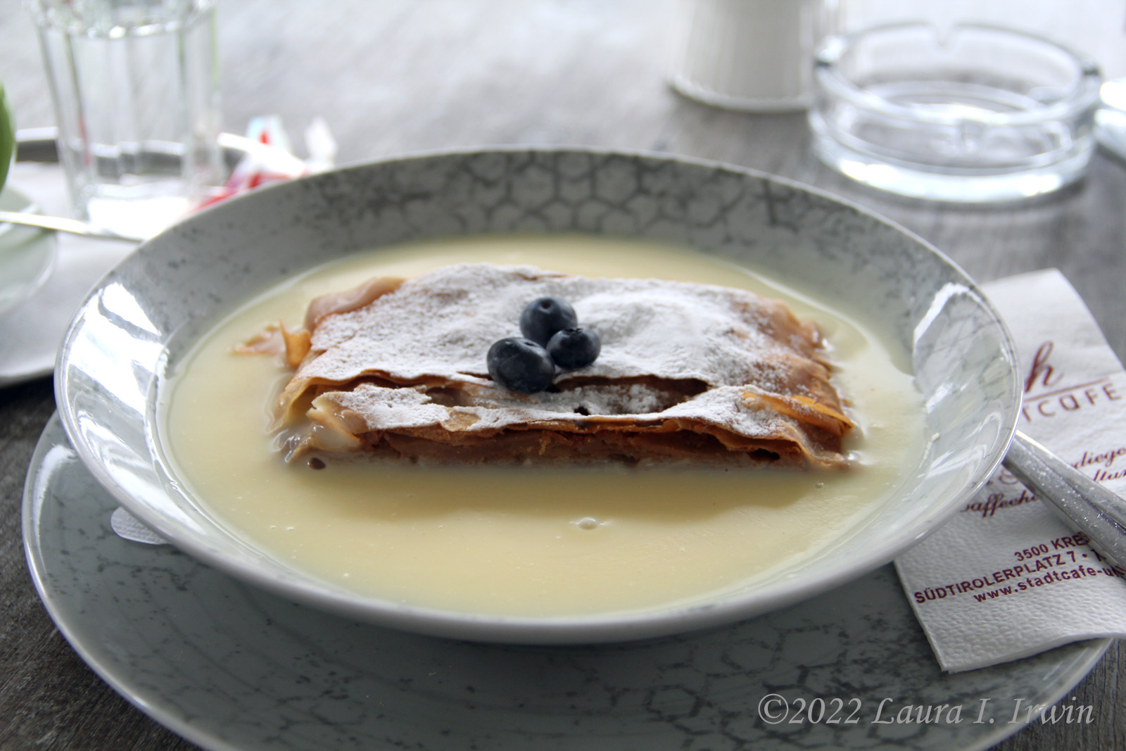 I stopped at the tourist information center to ask about a café for a snack and was directed to Ulrich Das Stadtcafe, with a nice patio just next to the Steiner Tor. It was there that I had my first apple strudel of vacation. Both it and the hot chocolate were fine, but they didn’t exactly wow me and certainly weren’t memorable.