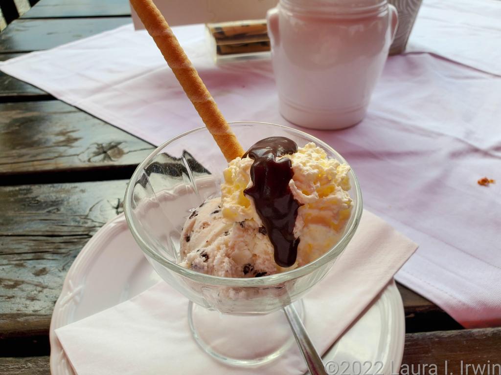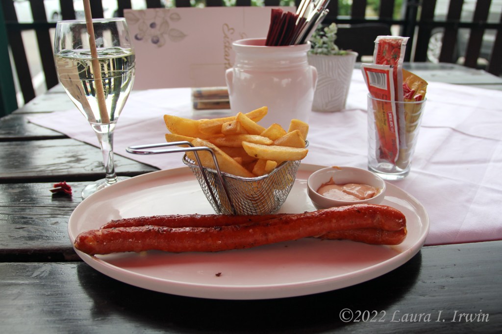 I spent the rest of the afternoon back at my hotel, going for a swim and doing some reading. I had dinner at Lieb Stöck’l, a place I had driven by but couldn’t find much info about online. The waiter nicely offered to translate the menu for me. I decided on käsekrainer (the same cheese-stuffed sausage I had in Vienna), which may seem boring, but was actually delicious. It had just a little bit of spice and the sauce on the side (kind of a tangy, thousand island style) was the perfect complement. I finished it off with a scoop of stracciatella ice cream/gelato, which the waiter decided to make into a sundae for me.