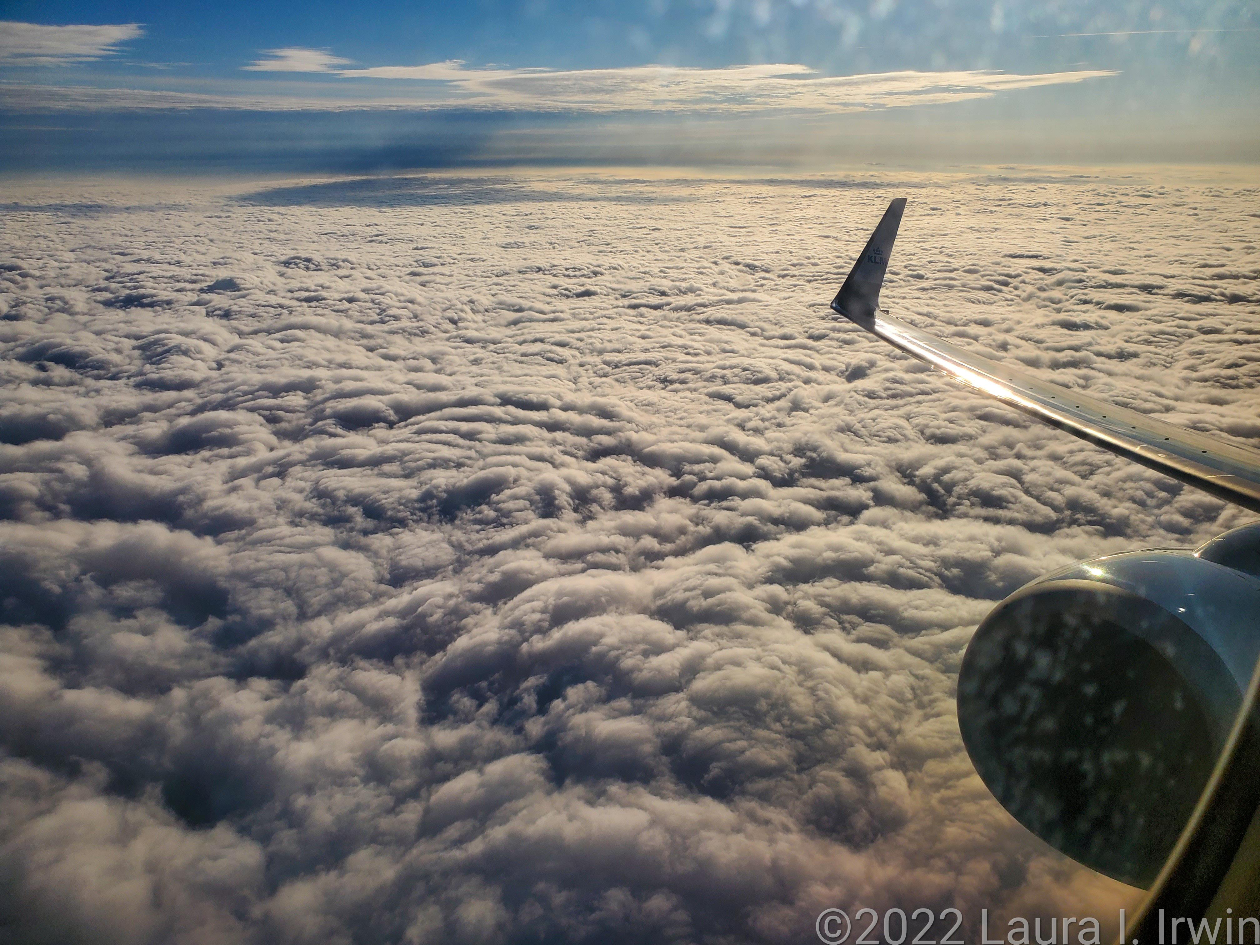 We took off from what seemed like the middle of the runway (definitely not the end) at a very steep angle. The seatbelt sign came off after about five minutes, while we were still climbing, which seems to be the norm in Europe. Before long, we were high above the clouds and I was on my way home.
