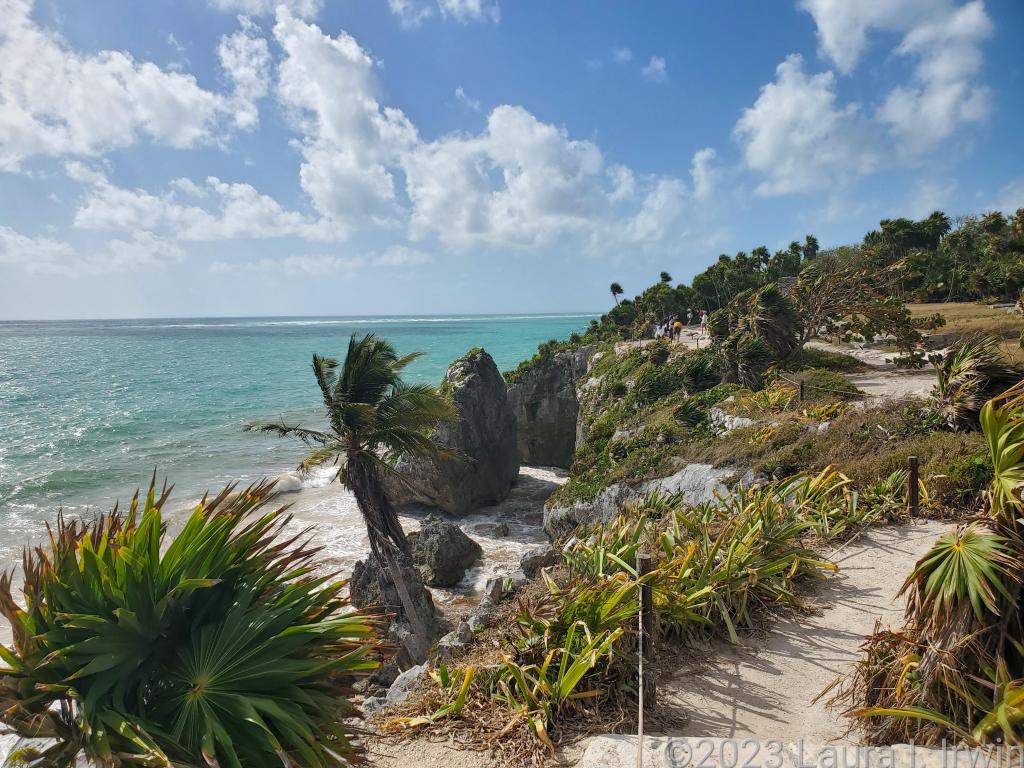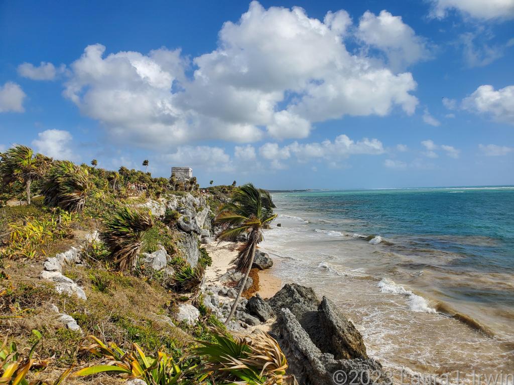 What sets Tulum apart from other Mayan sites in the region is its location, perched high up on a cliff above the Caribbean Sea. After the guided tour, we had about 1.5 hours to walk around on our own, eat, shop, etc. before meeting back at the entrance. I walked along the cliffs, took some pictures, and enjoyed an ice cream.