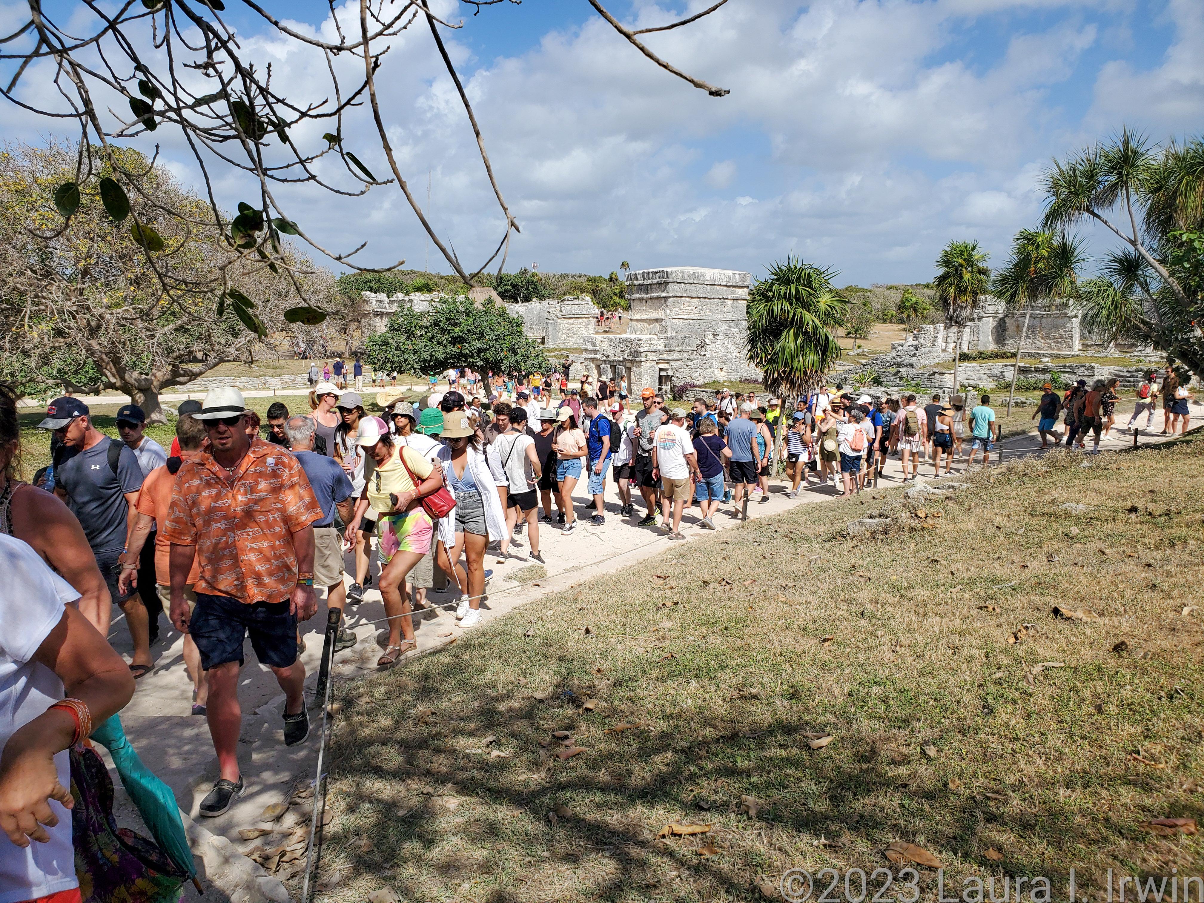We navigated through the crowds and set off for a 10 minute walk to the ruins. Our local tour guide kept us moving until we got to the main entrance before telling us about what we’d be seeing. Once inside, there were hundreds of tour groups and people everywhere. There were also a lot of local iguanas hanging out among the ruins.