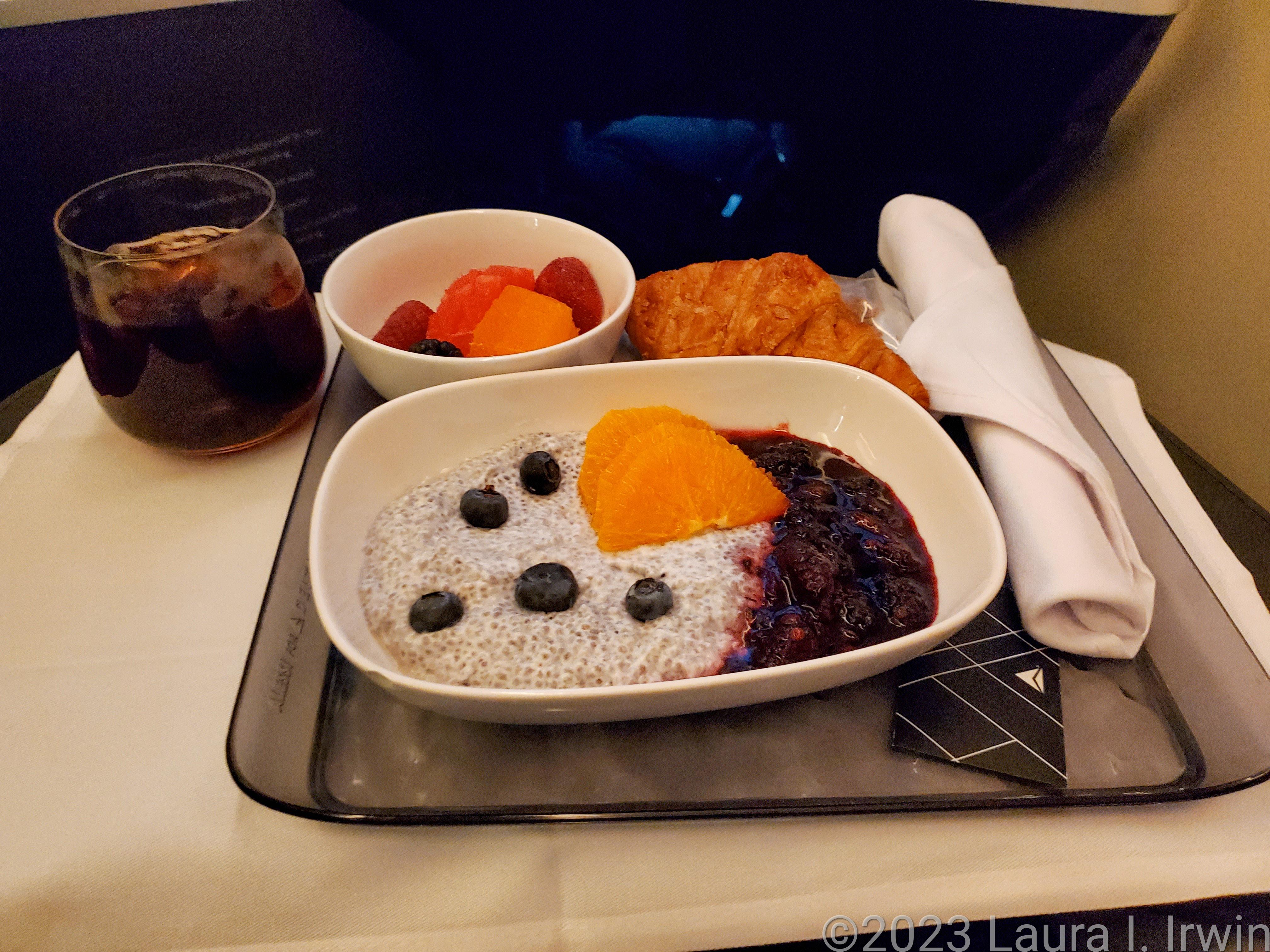 I arrived around 8AM this morning after a fitful four hours of sleep in my Delta One Suite. We seemed to hit a patch of turbulence each time I started to drift off to sleep. I opted to skip the dinner service but I devoured the chia seed pudding and croissant for breakfast, having only picked at the less-than-mediocre food in the Delta Express lounge for dinner last night.