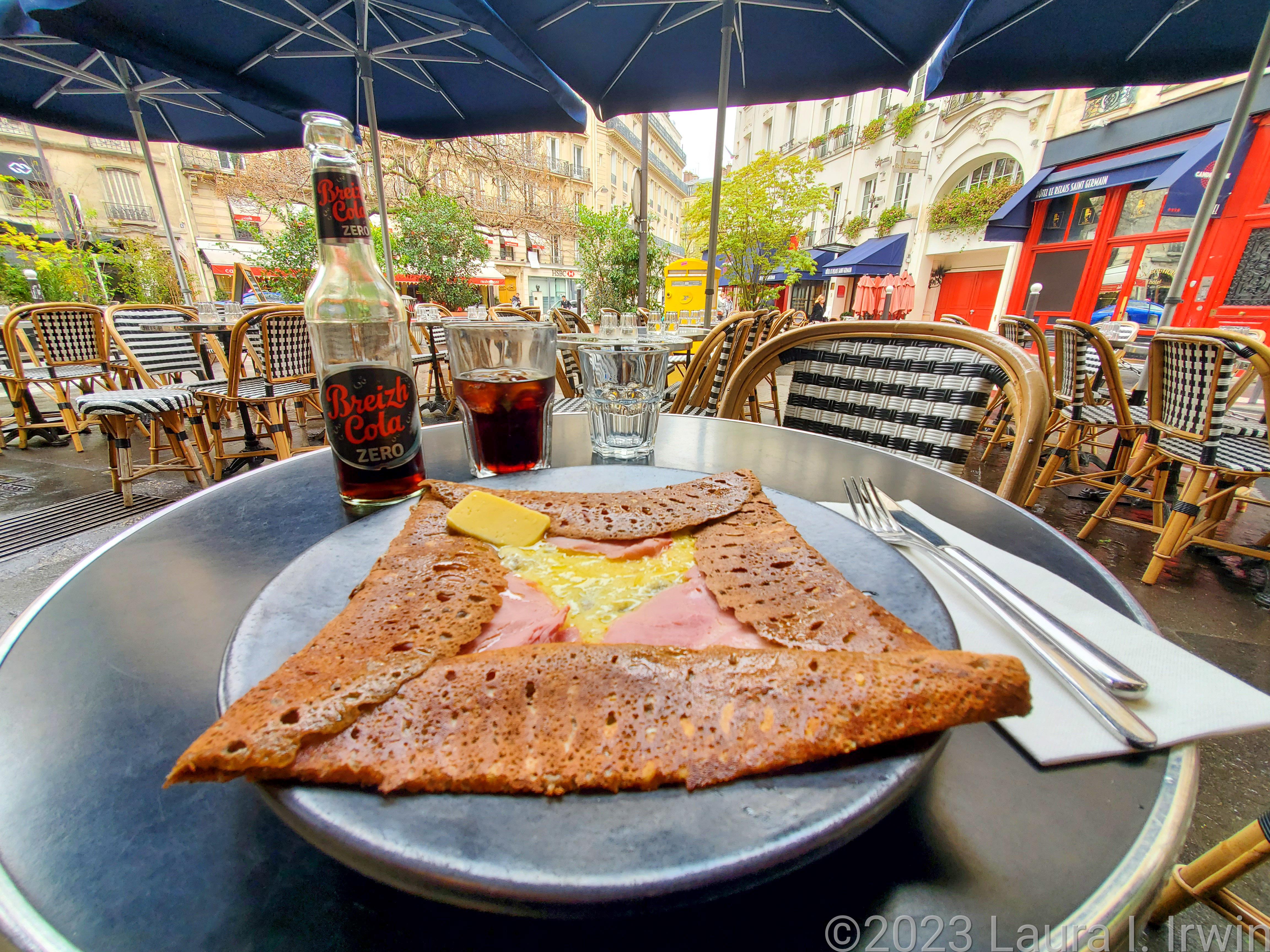 I headed to Breizh Café, well known for their delicious crepes. I ordered a ham and cheese crepe with scrambled eggs and it was oh-so-good for my first Parisian meal. Despite the cool temperatures (50 degrees or so), I opted to sit outside so I could do some people watching and soak in my surroundings.