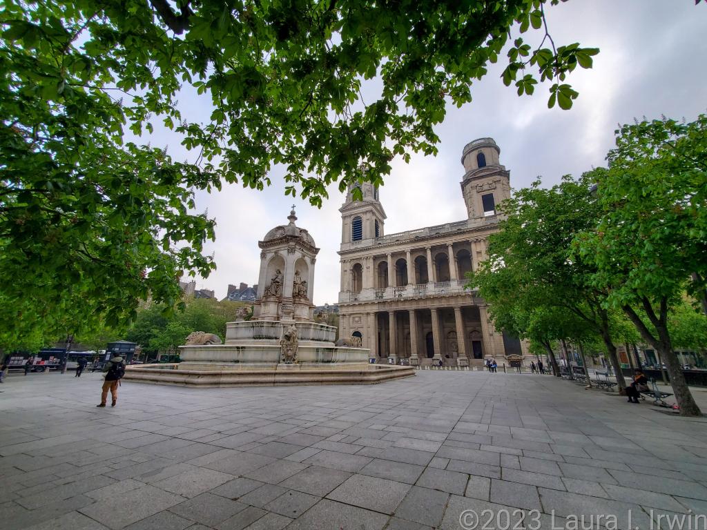I (again) slept in after staying up later than usual for the concert last night. I went to Café de la Mairie, in the shadow of Saint-Sulpice, for a breakfast of pain au chocolat and hot chocolate before heading to the Champ de Mars and Eiffel Tower. While I waited for the next bus, I wandered around Saint-Sulpice church for a few minutes.