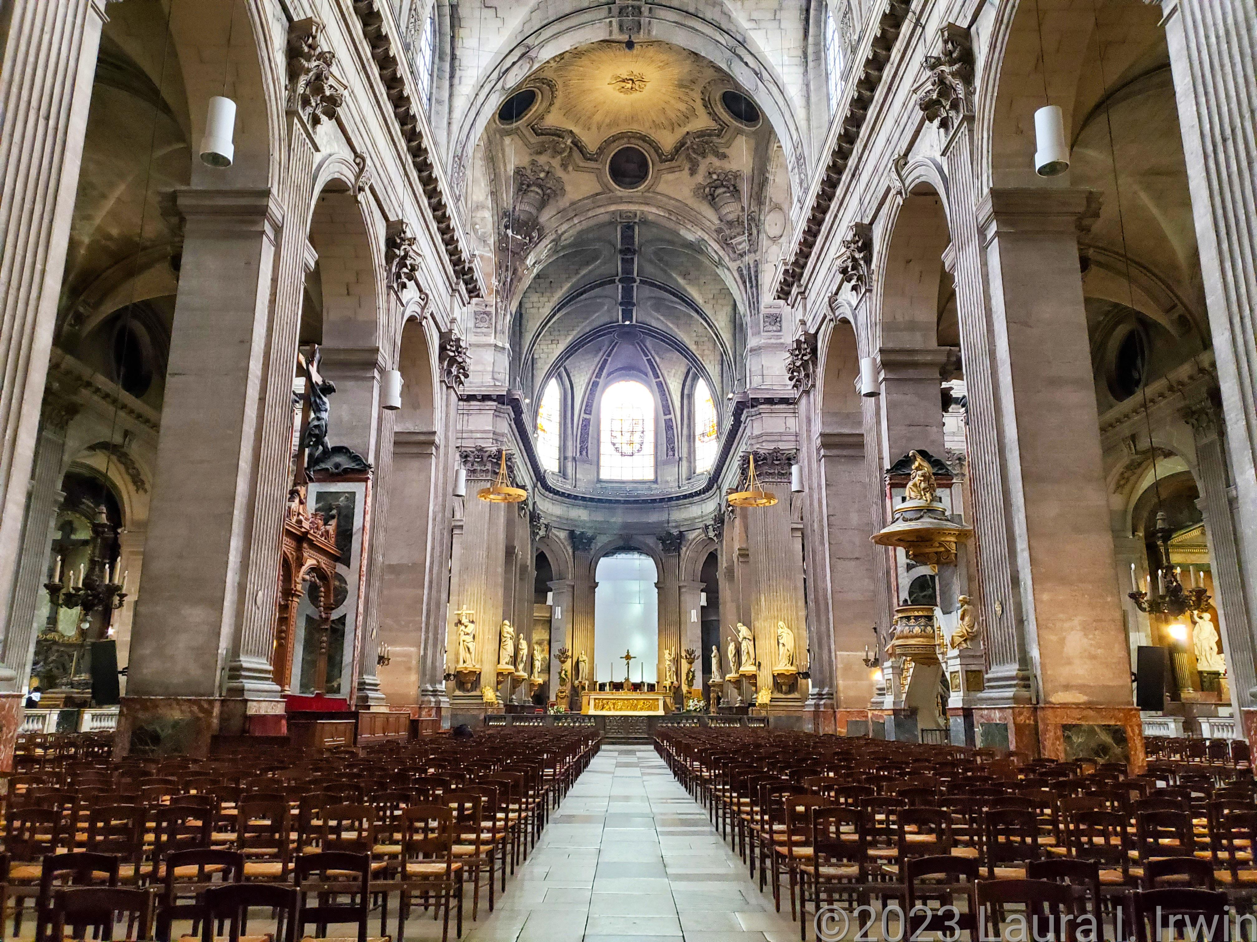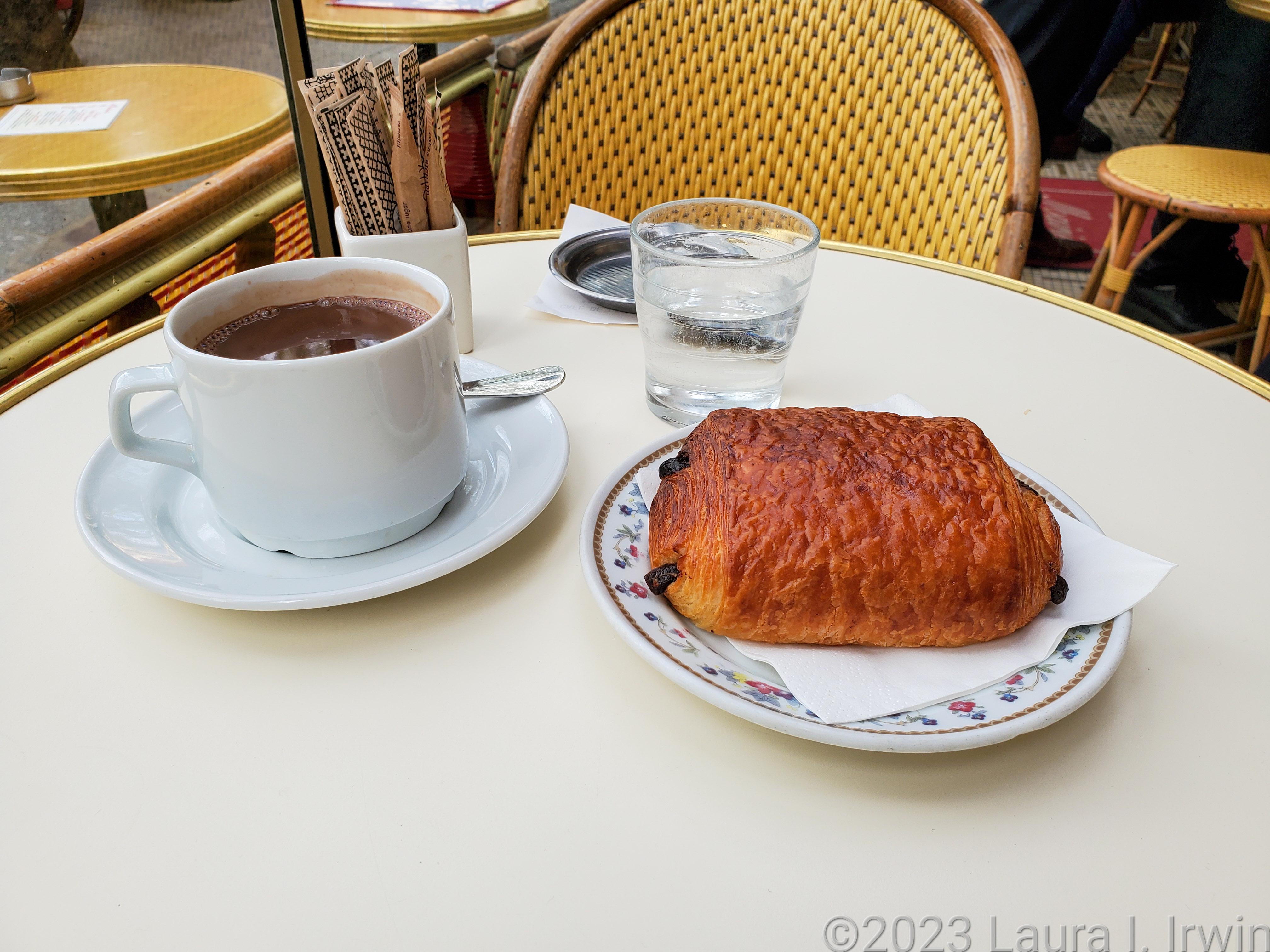I (again) slept in after staying up later than usual for the concert last night. I went to Café de la Mairie, in the shadow of Saint-Sulpice, for a breakfast of pain au chocolat and hot chocolate before heading to the Champ de Mars and Eiffel Tower. While I waited for the next bus, I wandered around Saint-Sulpice church for a few minutes.