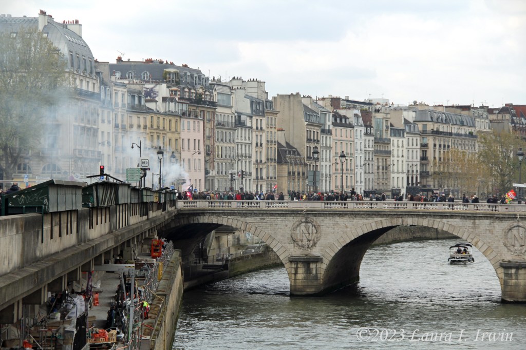 I should also note that today was the first time I have been exposed to any of the rioting/protesting taking place in Paris. When I was leaving the square, there was a protest march taking place. I was able to see it as they crossed over the Pont Saint-Michel bearing flags and torches. I have also seen a very heavy police/military presence both yesterday afternoon and today. I didn’t feel unsafe, just a bit disconcerted seeing all of the police and military carrying assault weapons around.