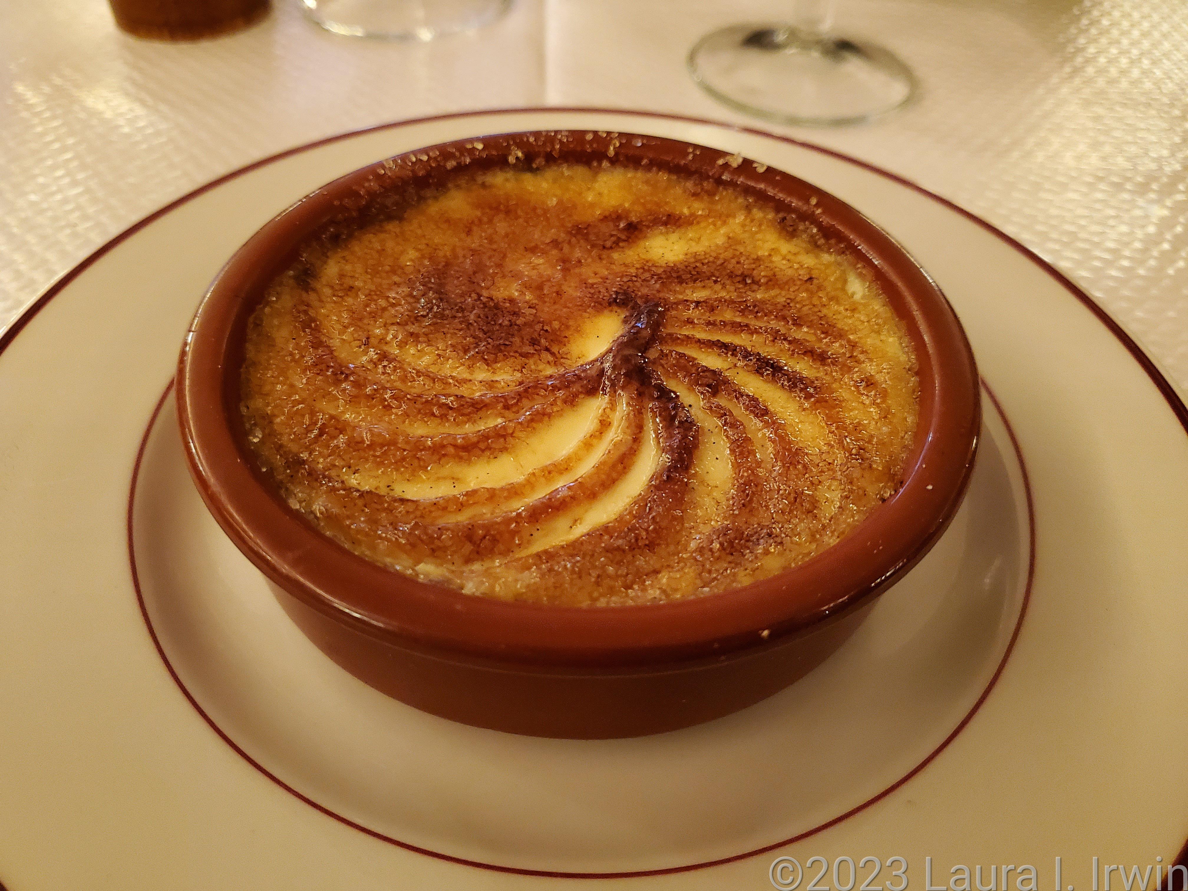 Le Relais de L’Entrecôte Can you imagine a restaurant with just one item on the menu (aside from drinks and dessert)? Enter Le Relais de L’Entrecôte. There is one choice on the menu: steak frites. Your only option is whether you want it rare or medium. That’s it. I waited over an hour in line for a table, but every bite was worth it. The steak was very tender, and the light pepper sauce was to die for. Having only eaten a croissant and dessert today, I didn’t realize quite how hungry I was until I started eating. While I was waiting for my table to be cleared, a waitress appeared and loaded up my plate with a second helping. Don’t mind if I do! Of course, I had to try out the crème brûlée for dessert… it was so light and creamy, I’m sure there weren’t many calories at all!
