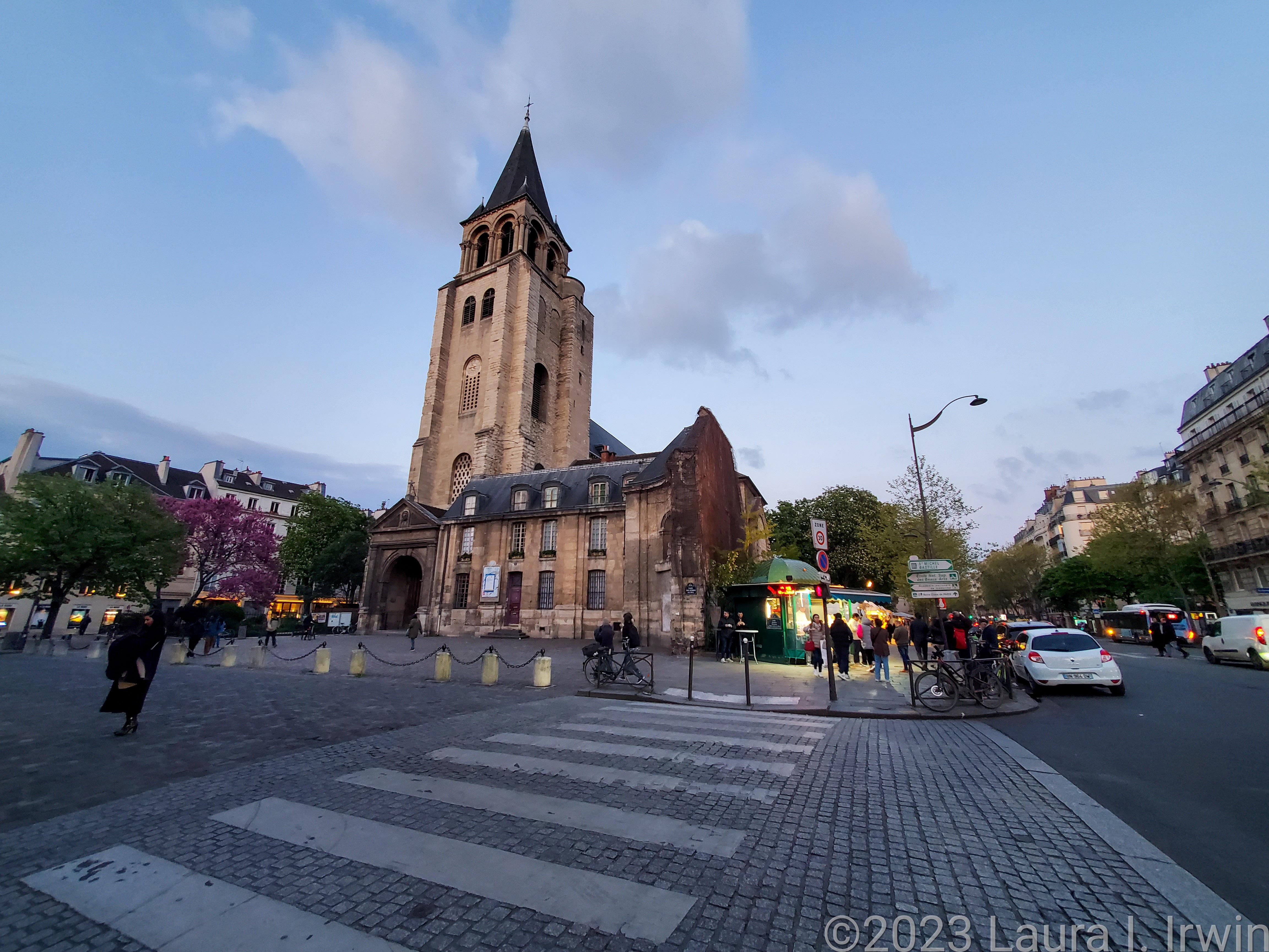 The Latin Quarter and Saint-Germain-des-Prés On each of my two previous visits to Paris, I had my picture taken standing on the same patch of grass in Square René-Viviani. An update for 2023 was in order and that was my next destination after “lunch”. I found someone to take my picture fairly quickly and was then able to sit and enjoy the square and flowers for a few minutes. I wandered through the streets of the Latin Quarter, Saint-Germain-des-Prés, and Luxembourg gardens on the way back to my hotel.