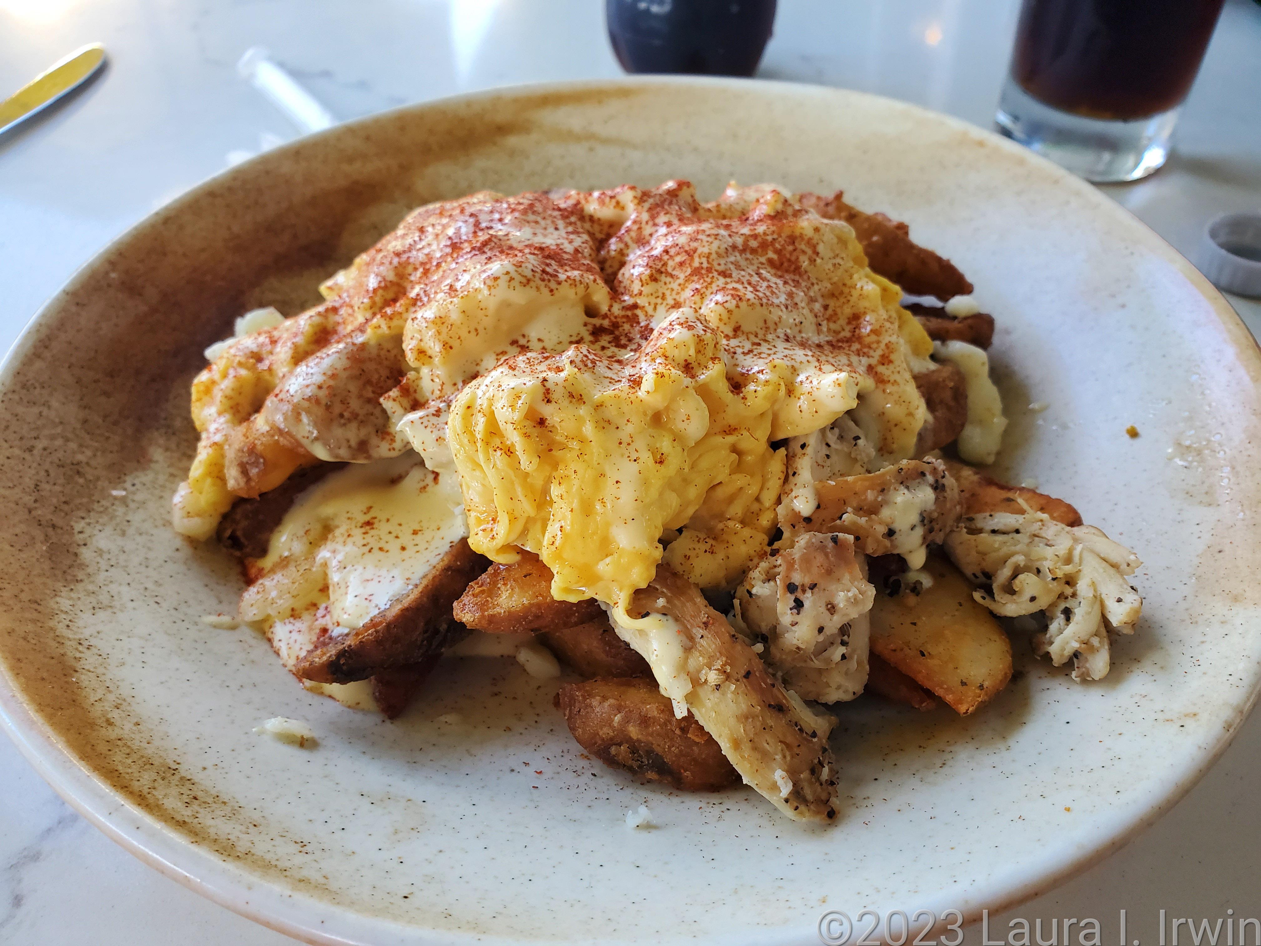 But first, breakfast. In the form of rich, indulgent pulled chicken breakfast poutine at OEB Breakfast Co. by the water in Yaletown. The entire menu looked tempting, but I can’t get breakfast poutine at home so that made the decision easy. With herbed potato wedges, pulled smoked chicken, scrambled eggs, cheese curds, and a brown butter hollandaise, it certainly gave me plenty of fuel (and calories!) for the day.