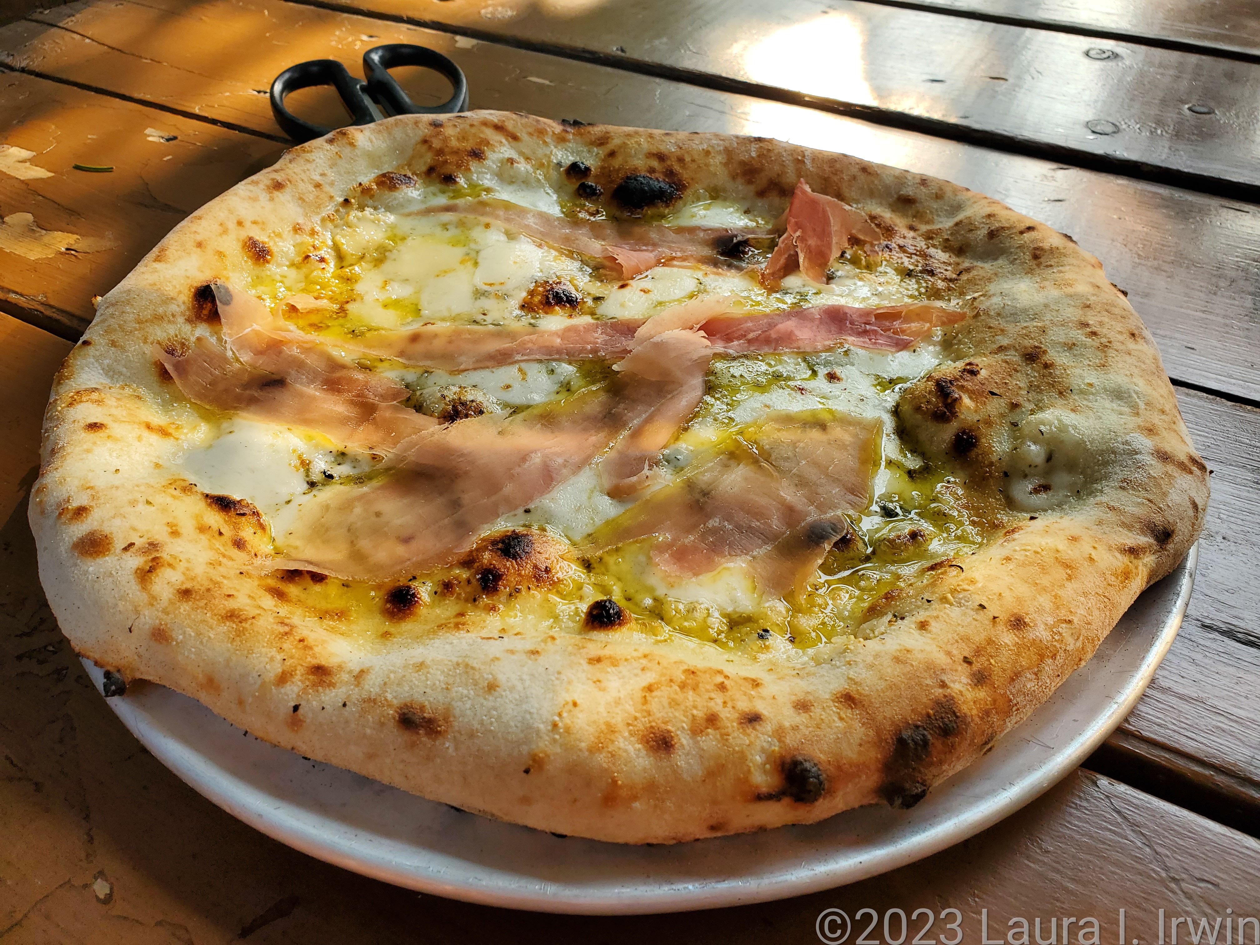 An iced mocha from Blenz filled me up as did a cider by the pool, where I spent the remainder of the afternoon. Dinner was at Pizzeria Antico, where I had a Quattro Formaggi pizza with prosciutto. The waitress warned me that the pizza was very “blue cheese forward”, but failed to mention it was also very “garlic forward”. After dinner, I enjoyed a salted caramel whoopie pie from locally popular Purebread that I bought earlier in the day.