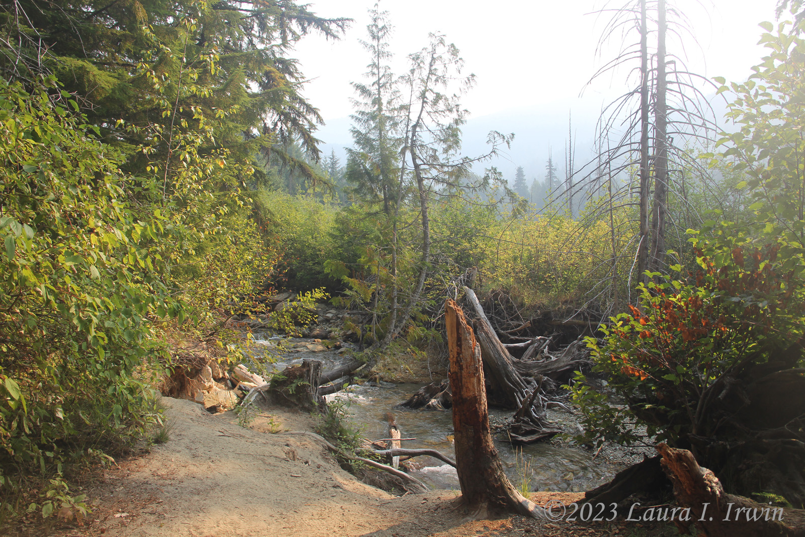 Since the air didn’t show signs of clearing, I decided to go for a walk. I headed in the direction of Lost Lake (about 2 miles from the village center), found a nature trail to follow for a while, circled the lake, then headed back into town.