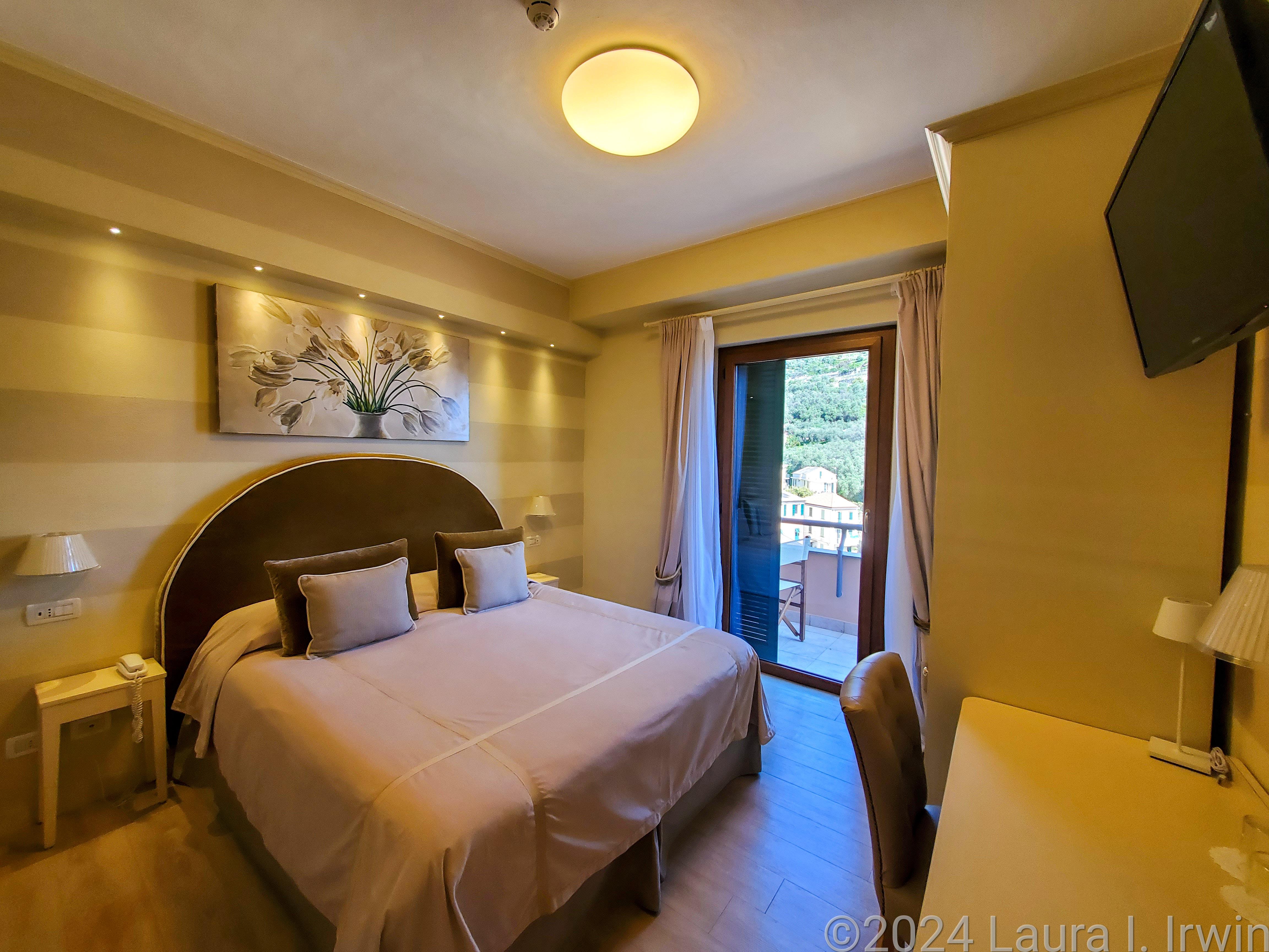 The Florence airport is very small so it didn’t take too long to retrieve my luggage and head to the tram that would take me to Florence’s Santa Maria Novella train station. From there, I took a three hour train ride (via Pisa) to Monterosso. Once I arrived in Monterosso, it was about a 15 minute (uphill) walk to my hotel. I had been emailing back and forth with a very nice woman from the hotel last week, so it felt like I already knew her when I walked in. My room is on the small side, but has a beautiful balcony view overlooking the town with the Ligurian Sea in the distance. The garden below my room is full of lemon trees!
