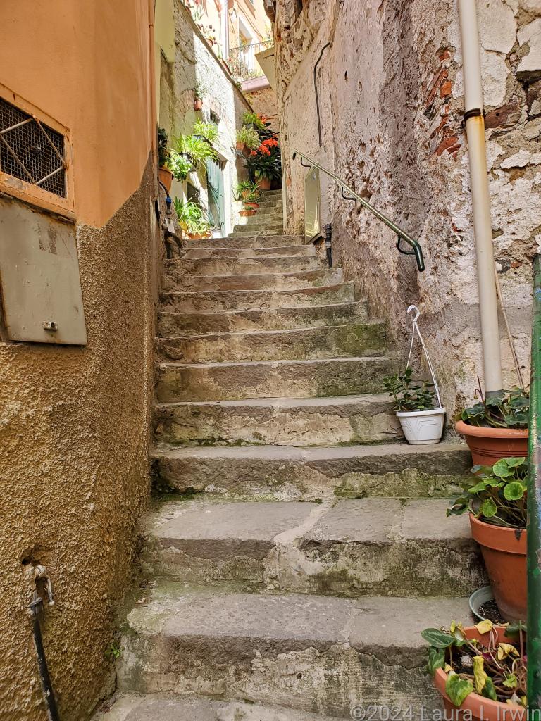 After my photo stop, I just wandered the streets (similarly steep and staircase-filled to the other villages), took some pictures, and enjoyed just being there. Once I got down to the church, the tour groups had arrived en masse. I took a quick look in the church and then followed the vineyard walk back to Punto Bonfiglio.