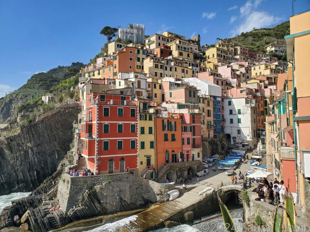 I didn’t leave Manarola until almost 3 o’clock, bound for Riomaggiore. I loved Manarola so much that I knew Riomaggiore probably wouldn’t be the same. And I was right. The town was crowded and didn’t have that special feel that Manarola has. So I looked around for a few minutes, took the obligatory pictures by the harbor, and headed back to Monterosso.