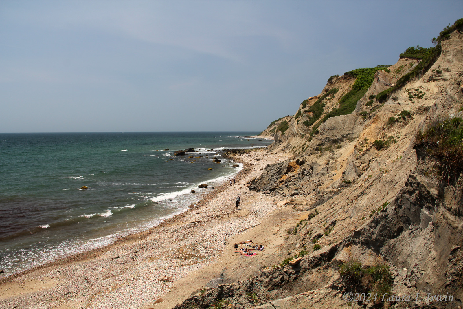 Next stop: bike rental. I’ve only ridden a bicycle a couple of times in the last few years, but biking is a way of life on Block Island and I decided to rent one for the day. I had been warned that the Island is hilly and the ride out to Mohegan Bluffs is mostly uphill. By the time I finally got there I was huffing and puffing and feeling muscles I didn’t even know I had. It almost did me in. Almost. Before arriving at the bluffs I stopped at 1661 Inn to see the exotic animals (think kangaroos, lemurs, and camels) and at Southeast Lighthouse to take in the views. The 141 stairs to the bottom of Mohegan Bluffs end before the bottom due to erosion, but the viewing platform provided stunning views in both directions.
