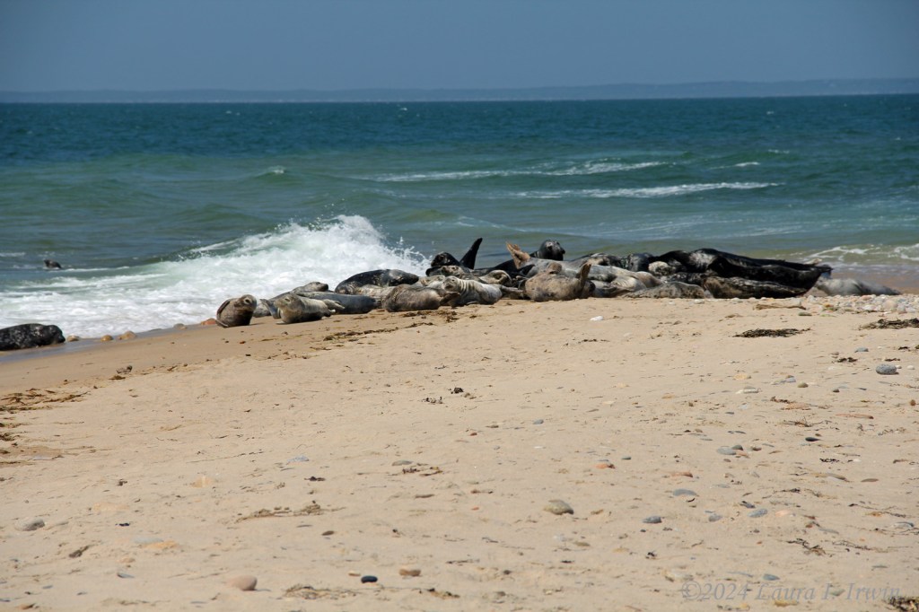 When I left the bluffs, my choice was to keep going on the bicycle or head back into town. I decided to keep going and headed west and north to complete the loop back to the east side beaches. I decided I’d keep pushing myself and continued on to North Lighthouse, situated on the northern tip of Block Island, about 4 miles north of the main beach and Old Harbor area. The road ends before you get to the lighthouse and you can walk 10-15 minutes down the beach to the lighthouse itself. While there, I saw several baby seagulls waddling around with their (very protective) parents. Another 10 minutes past the lighthouse, at Sandy Point, one can find a colony of seals playing in the water and beached on the shore.