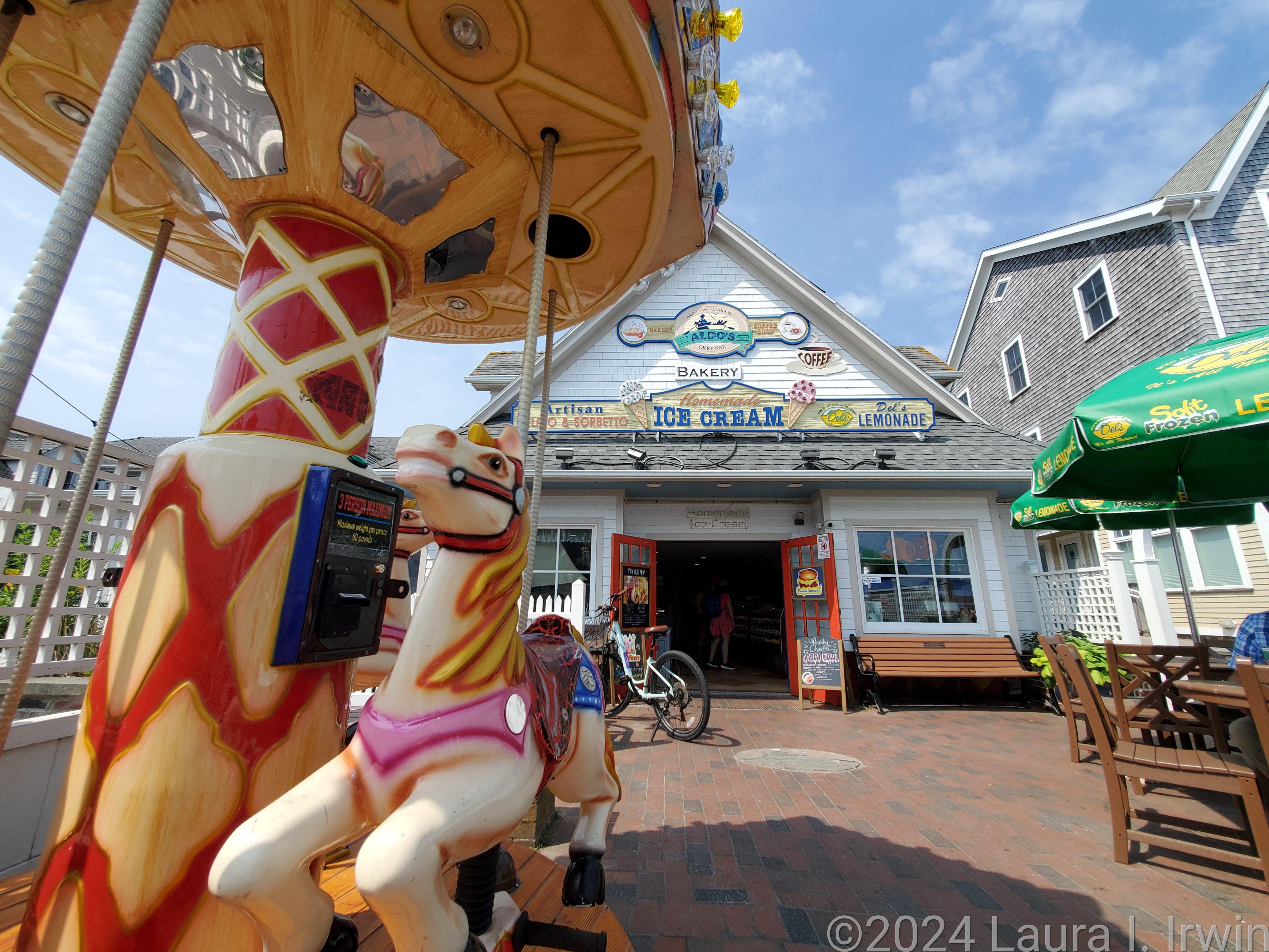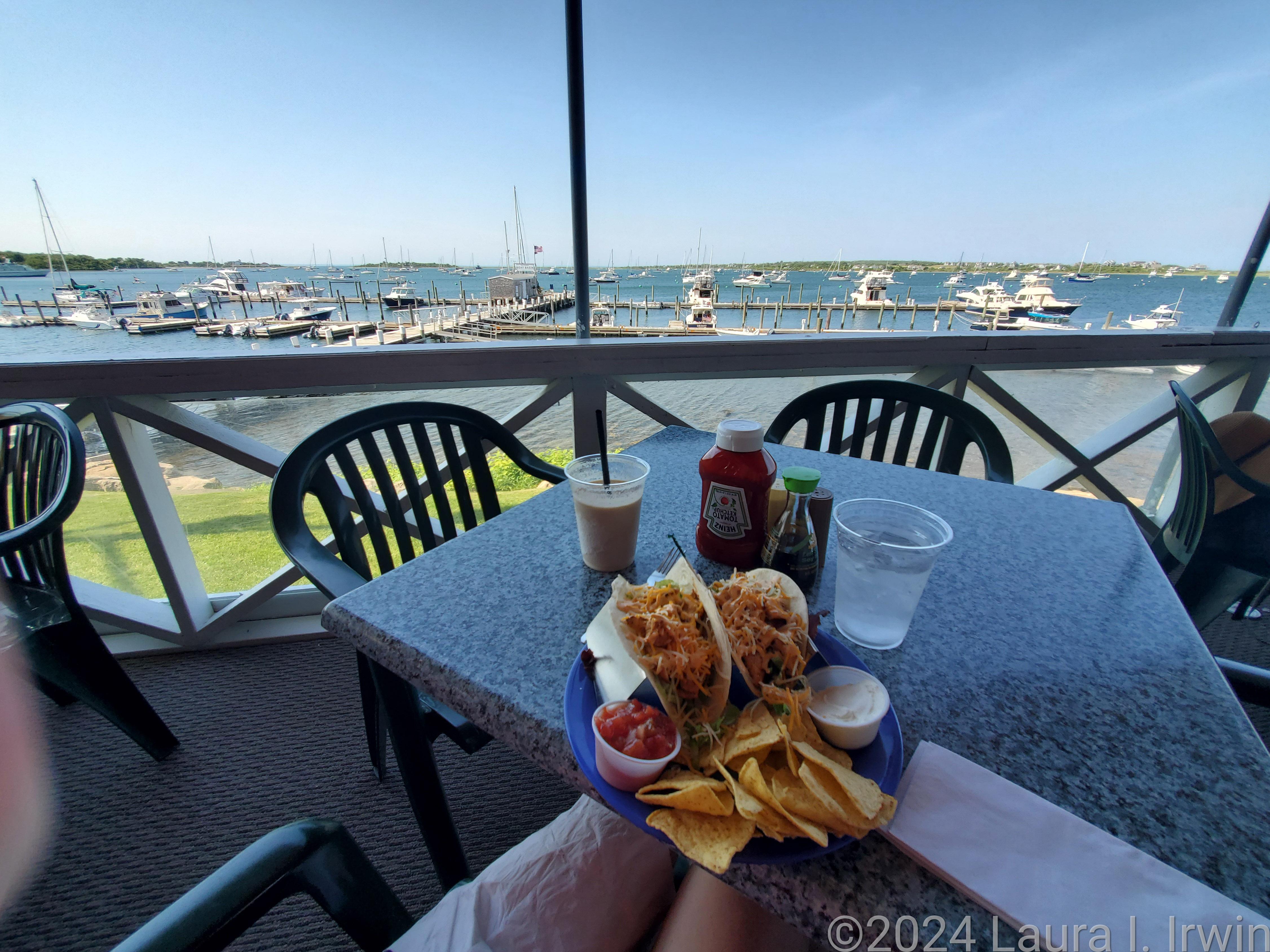 It was a long walk back to my bike and I was hot and tired. I walked the bike up the steepest part of the road back to town and turned off to visit New Harbor and enjoy a meal at The Oar. Blackened chicken tacos and one of their famous mudslides on the deck gave me my final wind for the day. I wandered around New Harbor then headed back to Old Harbor to return the bike, do some souvenir shopping, enjoy an ice cream, and catch the ferry back to Point Judith. All in all, it was a pleasant day trip and definitely worth the visit!