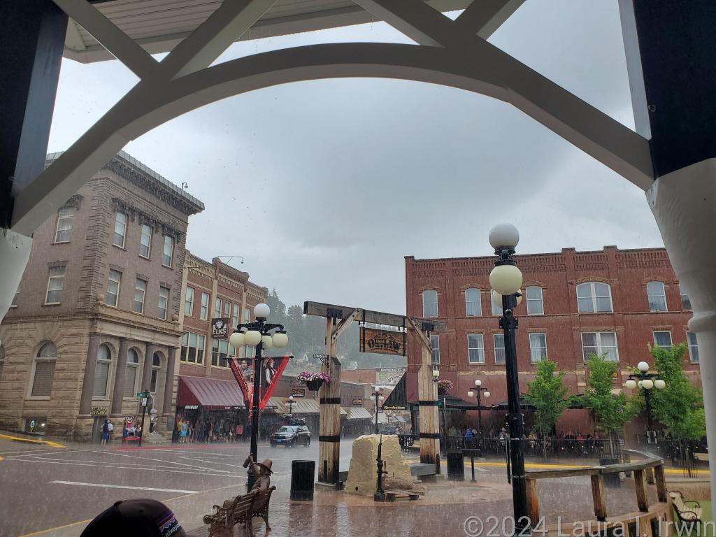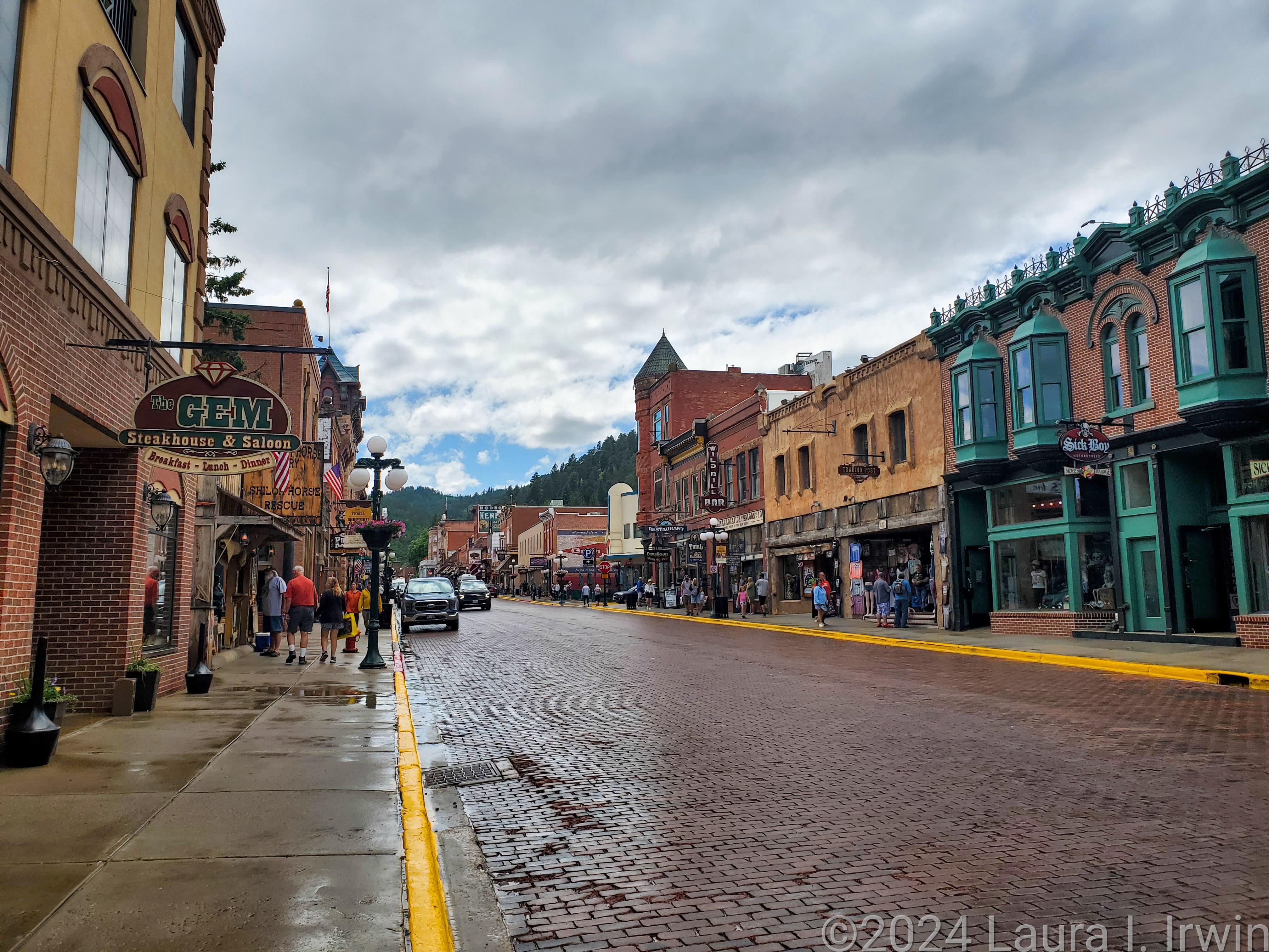My first impression is that western South Dakota is absolutely beautiful and feels like a “place where the soul can breathe”. As for Deadwood, it was an interesting introduction to my 39th state (unless we’re counting my brief visit to Minnesota this morning, in which case this is my 40th state). I mean, where else can you visit the graves of two famous wild west outlaws, gamble to your heart’s content, and watch a shootout in the town square, all in one place? The weather was somewhat uncooperative, with rain and some rumbles of thunder while I was in Deadwood. Between raindrops, I walked along the historic Main Street, which is lined with casinos, Old West saloons, souvenir shops, and restaurants. I also watched the short “shootout” at Outlaw Square and won a whopping $6.65 at the Tin Lizzie casino.