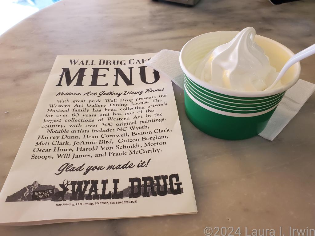 I opted to eat across the street at the Badlands Saloon and Grille, which turned out to be a bad idea. My buffalo chicken wrap had so much buffalo sauce that my mouth was on fire and I could barely eat it. The waitress didn’t seem to care when she took away my nearly full plate and I explained the problem. Thankfully, a small cup of soft serve ice cream from Wall Drug filled me up for the night.