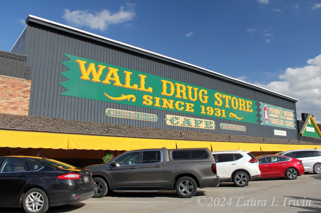 This afternoon I drove about two hours east to Wall, South Dakota. If you’ve ever heard of Wall Drug, this is the place. I dropped my stuff off at my hotel and then went to check out the main attraction in town and eat dinner. Wall Drug has been in business since 1931 and advertises its free ice water and 5¢ coffee. It is a weird mix of shops, kind of like a small mall, with things like Western wear, a drug store, t-shirt shop, and general store. There is also a cafeteria style restaurant and soda fountain.
