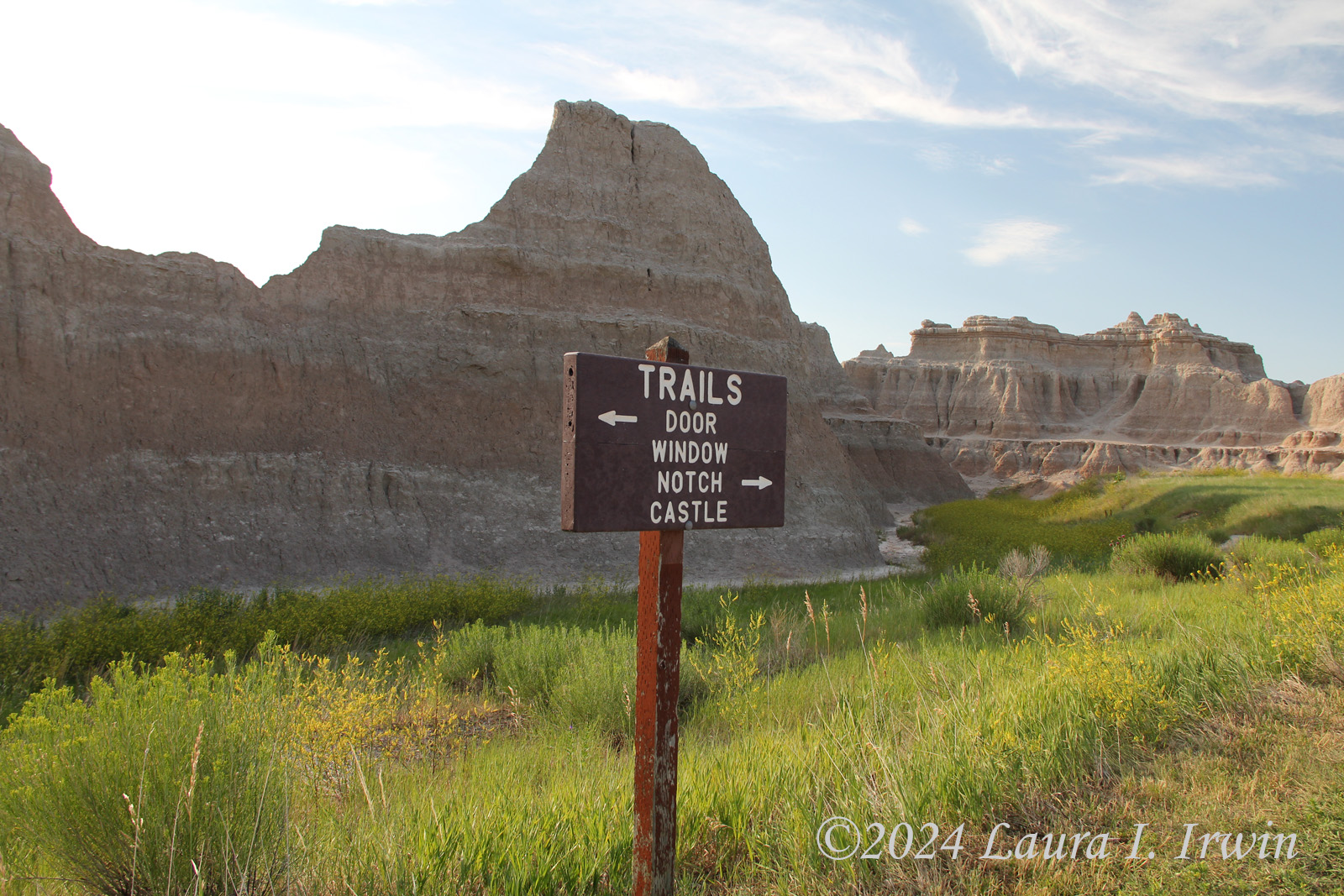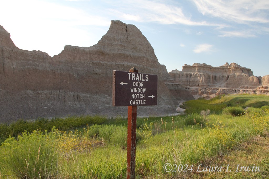 Door Trail The Door trail, Window trail, and Notch trail all start conveniently from the same parking lot a little south of the Northeast entrance to the park. The Door trail has a short boardwalk to a “door” overlooking some of the badlands. My favorite part of the trail actually came after the boardwalk ended. There is a half-mile “trail” starting at the end of the boardwalk that takes you to a viewpoint where you are surrounded by badlands in all directions. I use the term “trail” loosely, as the trail isn’t really a marked trail. There are numbered yellow posts to keep you going in the right direction, but you can get from post to post however you want. I kept thinking, “this is so cool!” as I wandered over and around the rock formations.