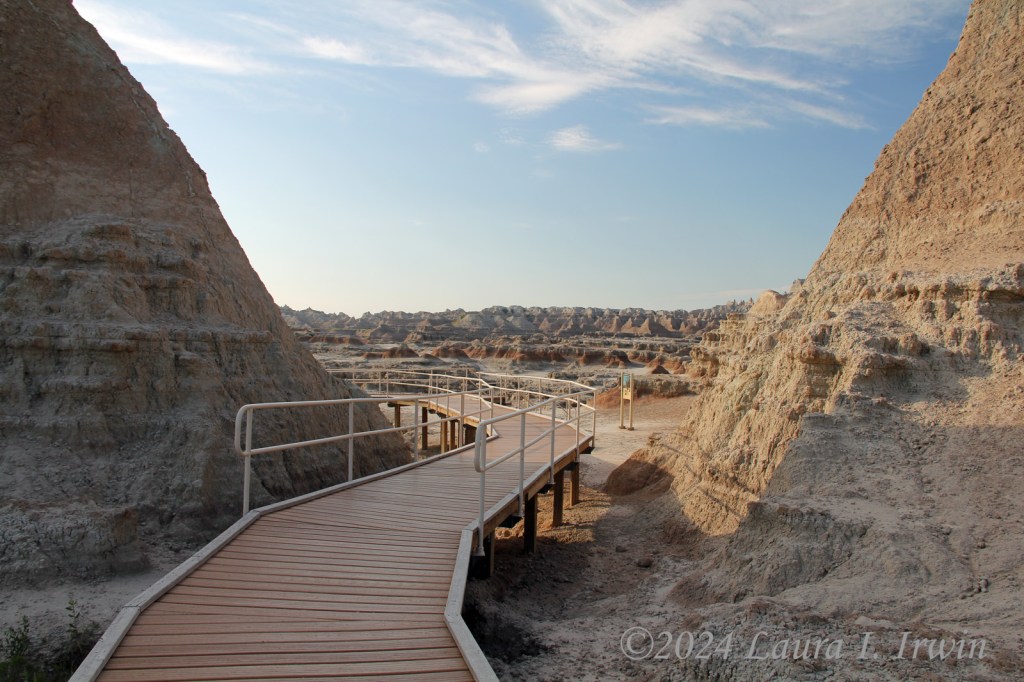 Window Trail The window trail is only 1/5 mile long and leads to a “window” overlooking the badlands. It’s a boardwalk the whole way and leads to a pretty view at the end.