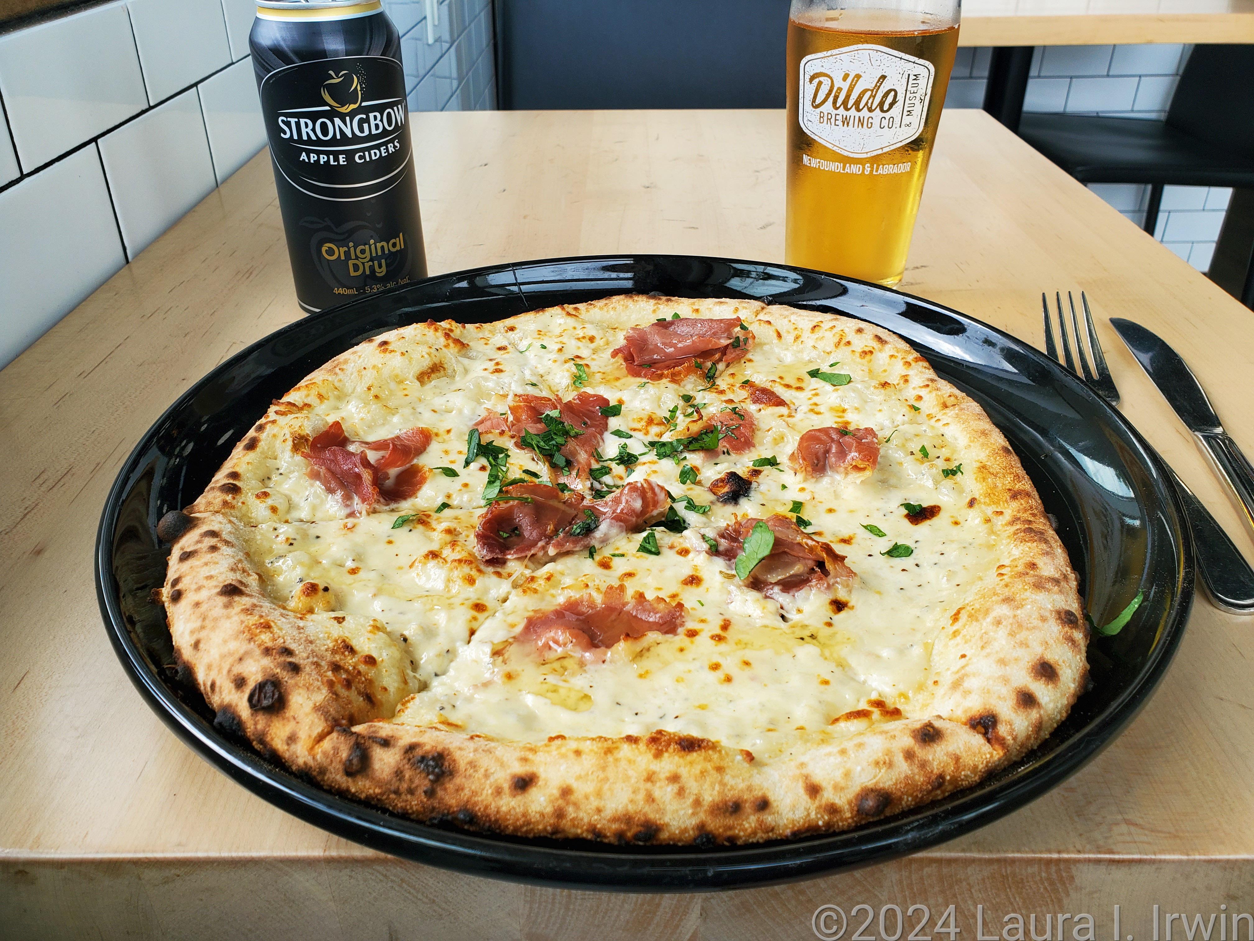 My next outing of the day was to pick up a couple of things at Target or Walmart (they’re both in the same area). And… closed. Literally every store is closed today. I mean, I know the Regatta is a big deal around here, but I didn’t know it was *that* big a deal that the major stores would close. Every store parking lot was empty. It was like Thanksgiving in the U.S. With my shopping trip postponed, dinner ended up being on the early side at Piatto Pizzeria. My favorite style of pizza is Neapolitan and Piatto claims to be the only certified Neapolitan pizza in Newfoundland. I had a pizza with garlic cream sauce, smoked mozzarella, prosciutto, parsley, and hot honey. It was pretty good, save for the crispy prosciutto (I prefer raw prosciutto put on after the pizza is cooked). A quick walk around St. John’s after dinner, and I was ready to settle in for the night.
