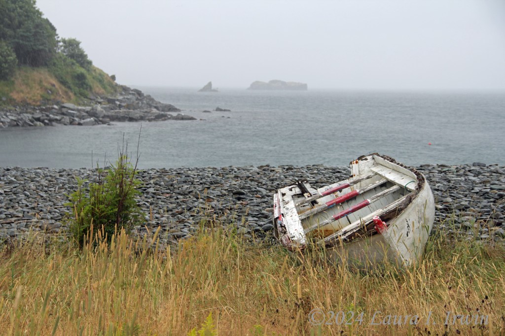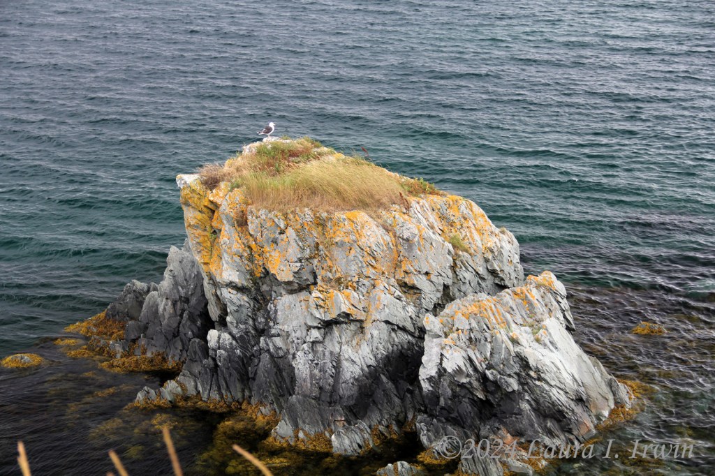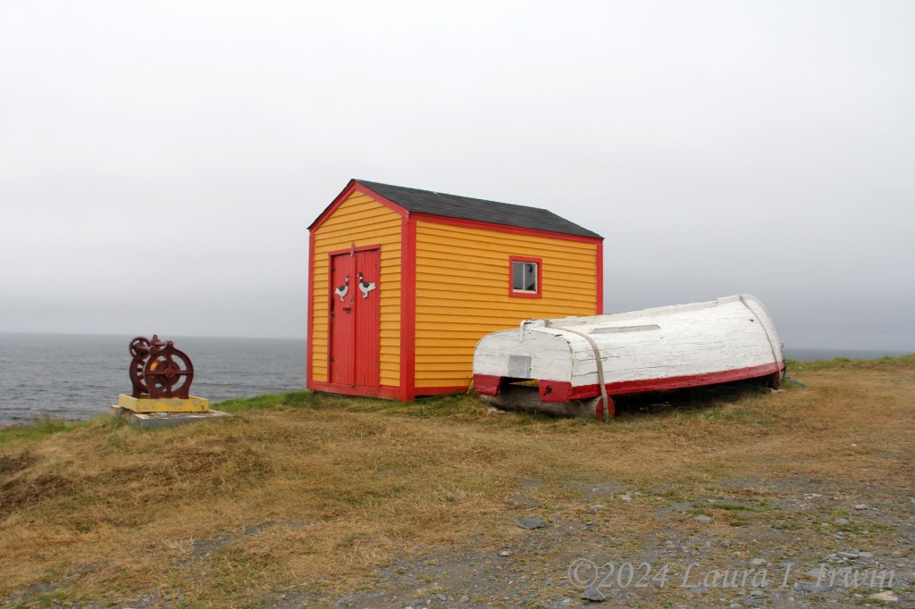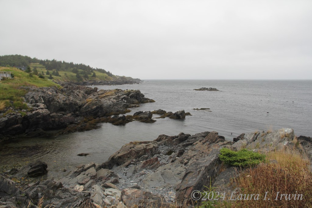 The rest of my day was spent driving part of the Baccalieu Coastal Drive on the northern part of the Avalon Peninsula. My destination was the Small Point/Broad Cove area, where my stepmother’s family hails from. The weather turned overcast and rainy by mid-morning so I only made a few stops along the way. There are a number of small peninsulas to explore, not unlike the coast of Maine or the coast of Ireland. I chose one that looked appealing on the map and headed toward Port de Grave and the Green Point Lighthouse. The road was winding and provided plenty of views of the coast along the way. I thought maybe I was in the wrong place following the signs to the lighthouse, as the road turned to gravel, then climbed up a hill that looked like it would drop right off into the ocean. It did not, and soon I was at the end of the road looking down at the red and white striped lighthouse.