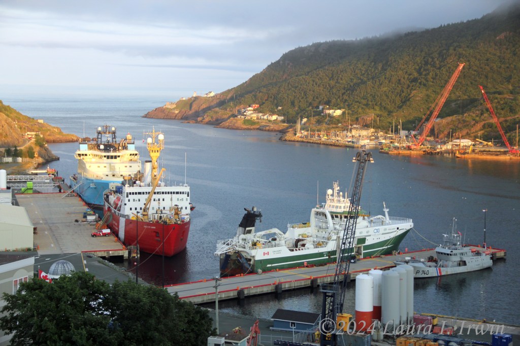 I was initially disappointed that my hotel room looks out toward the Narrows and not into the downtown area, but I have been fascinated by watching the ships come in and out of the harbor. I have my binoculars with me (for the boat trip I took the other day) and I have spent a good amount of time with them at my window looking at the boats, the lighthouse, Signal Hill, and the harbor. Each time I see a new boat, I Google it to find out what its role is. As my dad says, I learn new things on every trip I take.