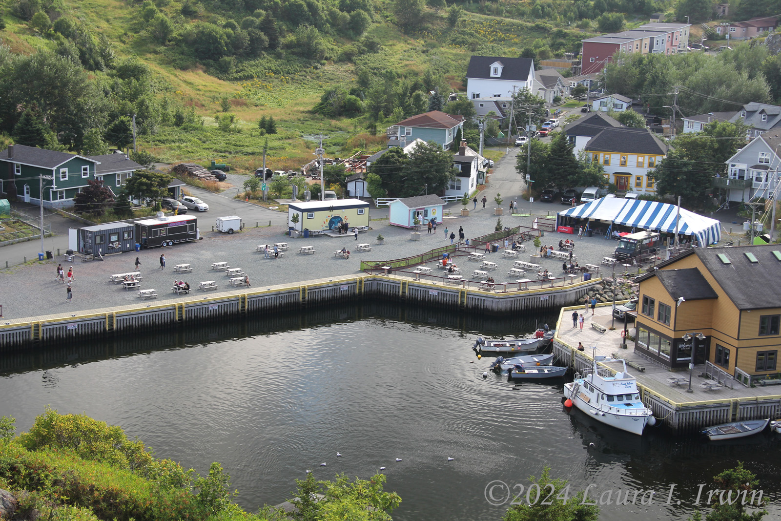 Though the sky was clearing by mid-afternoon, I took a couple of hours to be lazy and repack my suitcase before heading out again. In Quidi Vidi, there is an area called “The Wharf” with several permanent food trucks set up with picnic tables by the harbor. My original plan was foiled when the fish and chips truck was no longer there, but I ended up with an amazing lemon ricotta pesto pizza (Neapolitan style) and lemon San Pellegrino from Crosta Alta. And the setting couldn’t be beat!