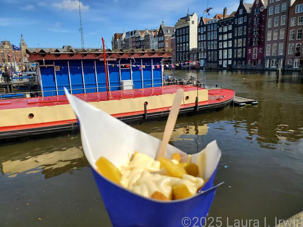 I quickly found the train to Amsterdam Centraal Station, figured out how to tap in with my credit card, and 15 minutes later, I was off the train and walking to my hotel. After dropping off my luggage, I hit the ground in search of food. My midday sustenance came in the form of a cone of Flemish fries with sweet mayonnaise. Mayonnaise seems to be the most popular topping for fries in Amsterdam. They were okay, in a been there, done that sort of way. I doubt I will indulge in any more fries during my visit.