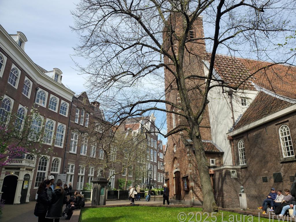 Then I was off to follow Rick Steves’ audio tour of Amsterdam. While I enjoyed learning more about the city and getting my bearings, I did not enjoy the mobs of people everywhere. Nevertheless, I wandered down the Damrak to Dam Square, then followed Kalverstraat to the Begijnhof. The Begijnhof is a courtyard surrounded by the former residences of the Beguine, a group of women who dedicated their lives to the service of others. They only allow about 50 people into the Begijnhof at a time, so I had a short wait to get in. The beautiful square surrounded by flowers was a quiet oasis from the chaotic streets just outside the courtyard. Along with the homes, there is also an English Reformed church and a small hidden Catholic church.