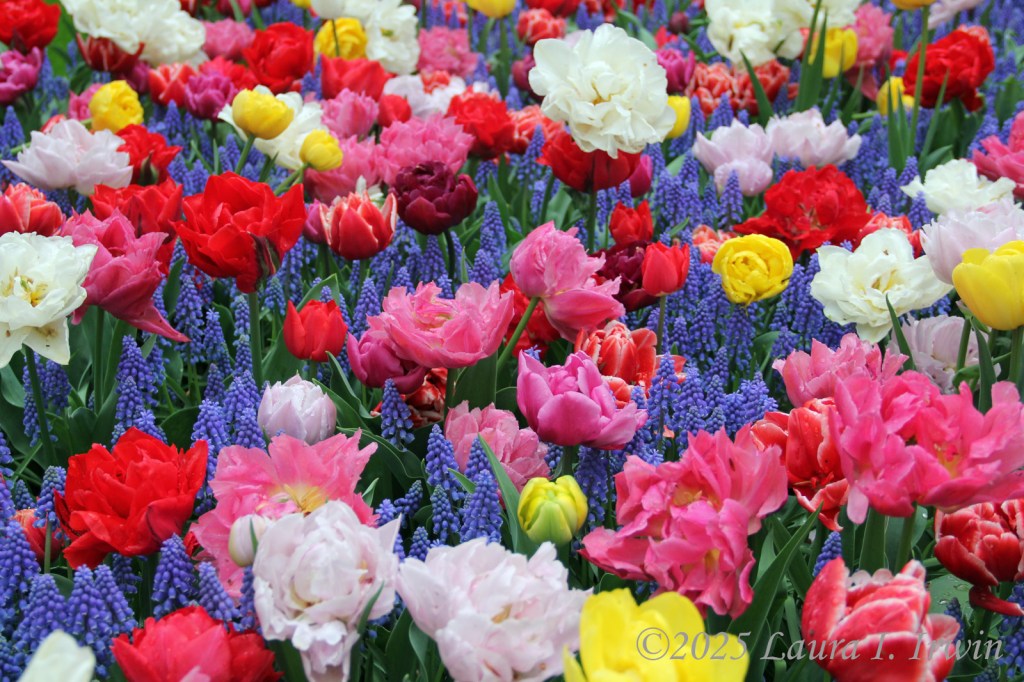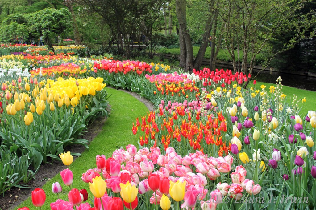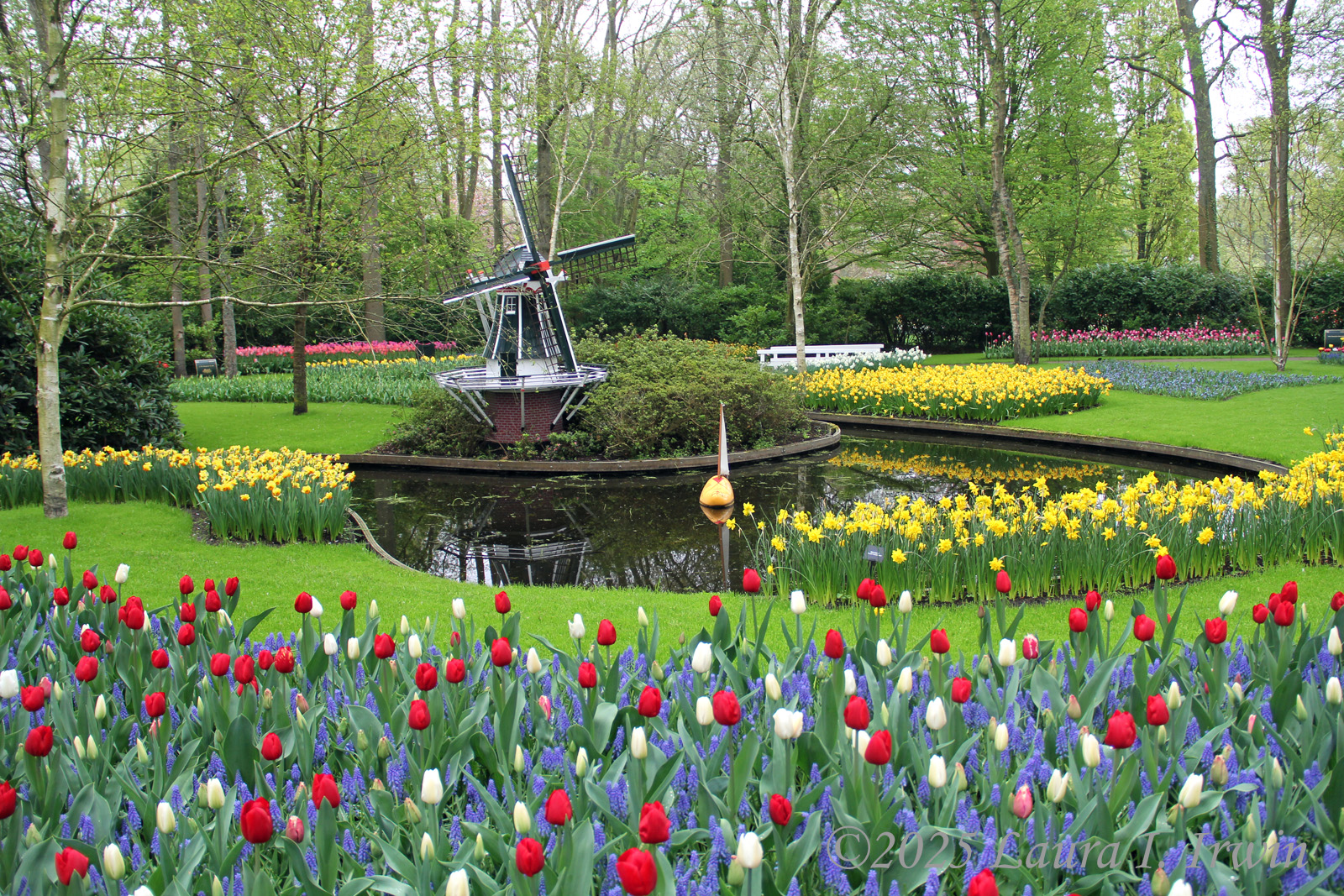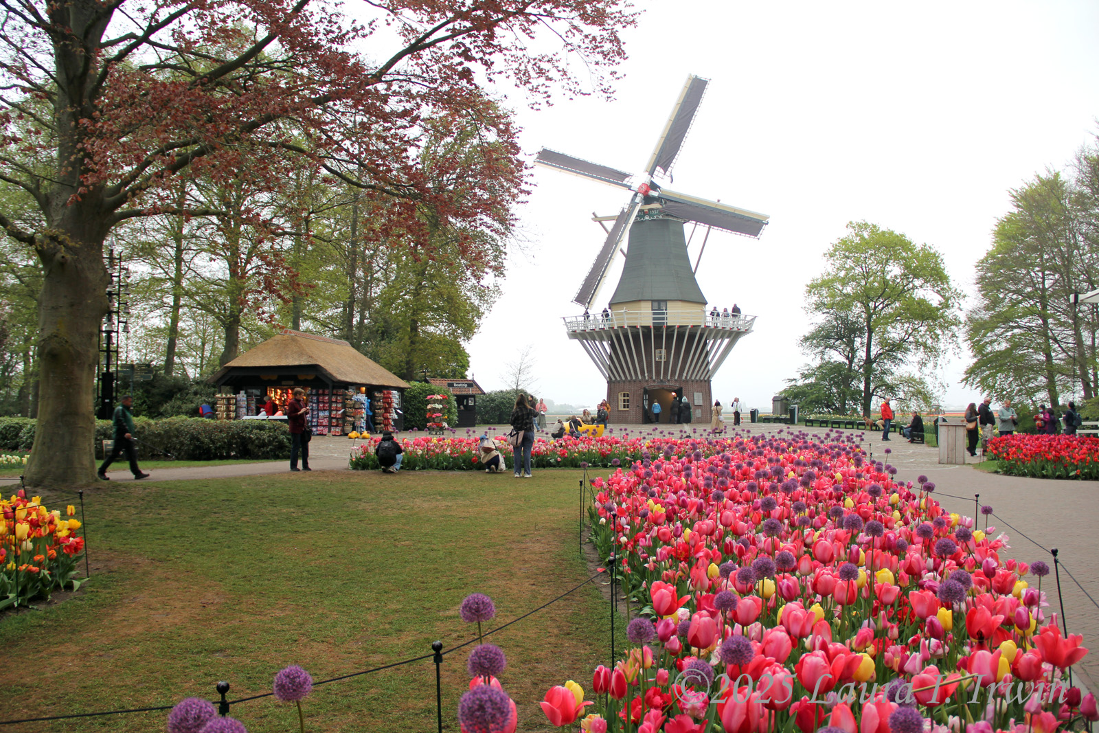 The gardens are every bit as beautiful as I imagined. Picture manicured tulip beds as far as the eye can see, glimpses of the tulip fields outside the gardens, windmills, fountains, and the scent of flowers everywhere. My (300+) pictures could never do it justice.